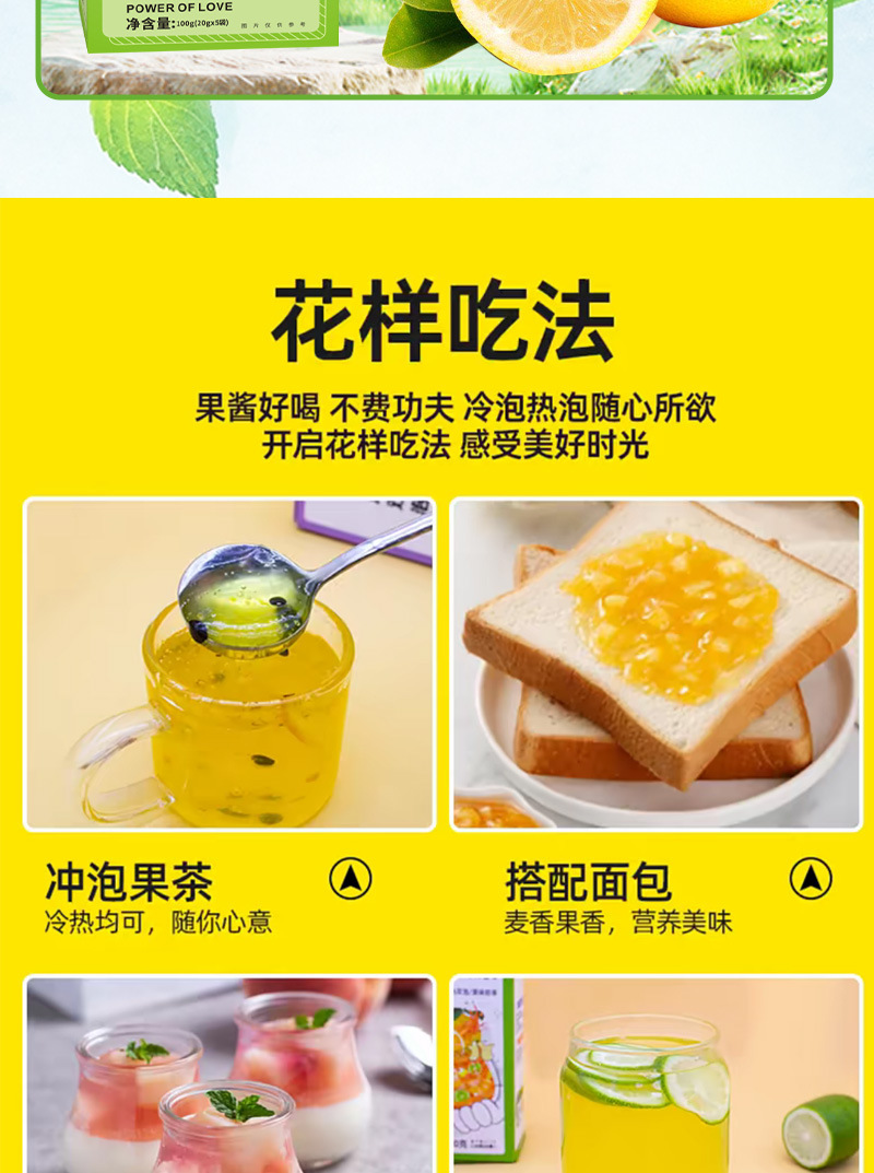 Сырьё и ингредиенты Lemon, green orange, passion fruit, honey, grapefruit, etc