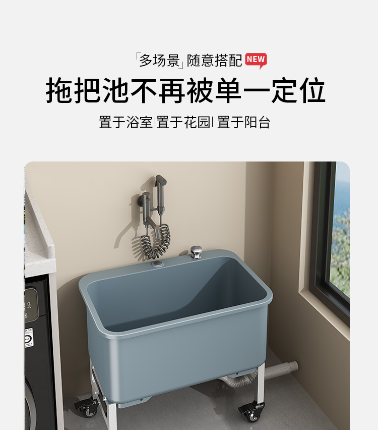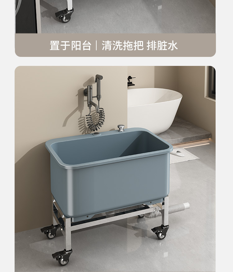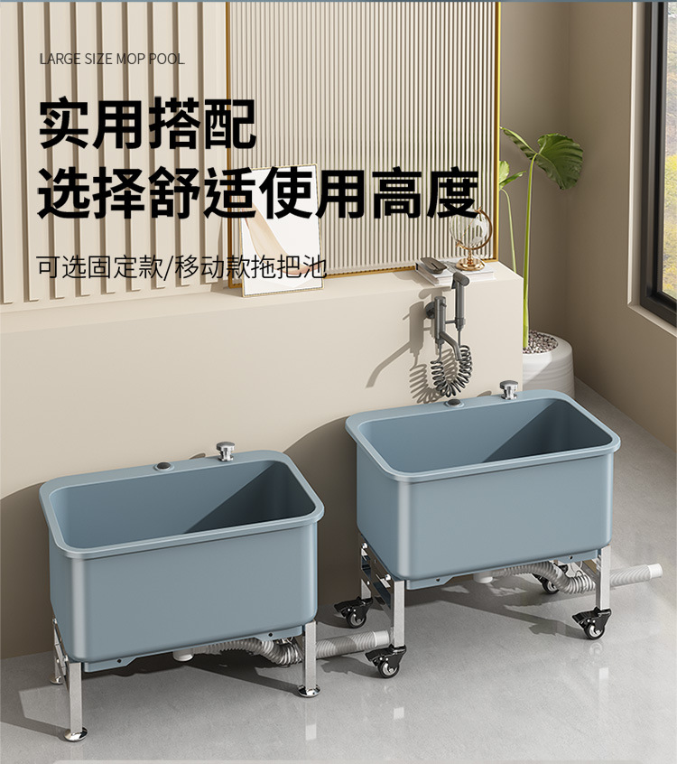 Высокое ведро для швабр из нержавеющей стали для балкона, небольшое моющее ведро с подвижным ведром и сливом