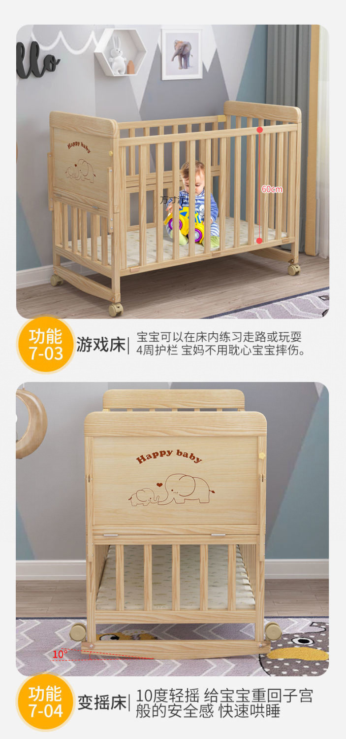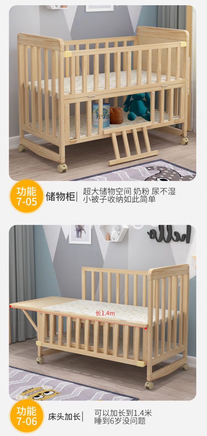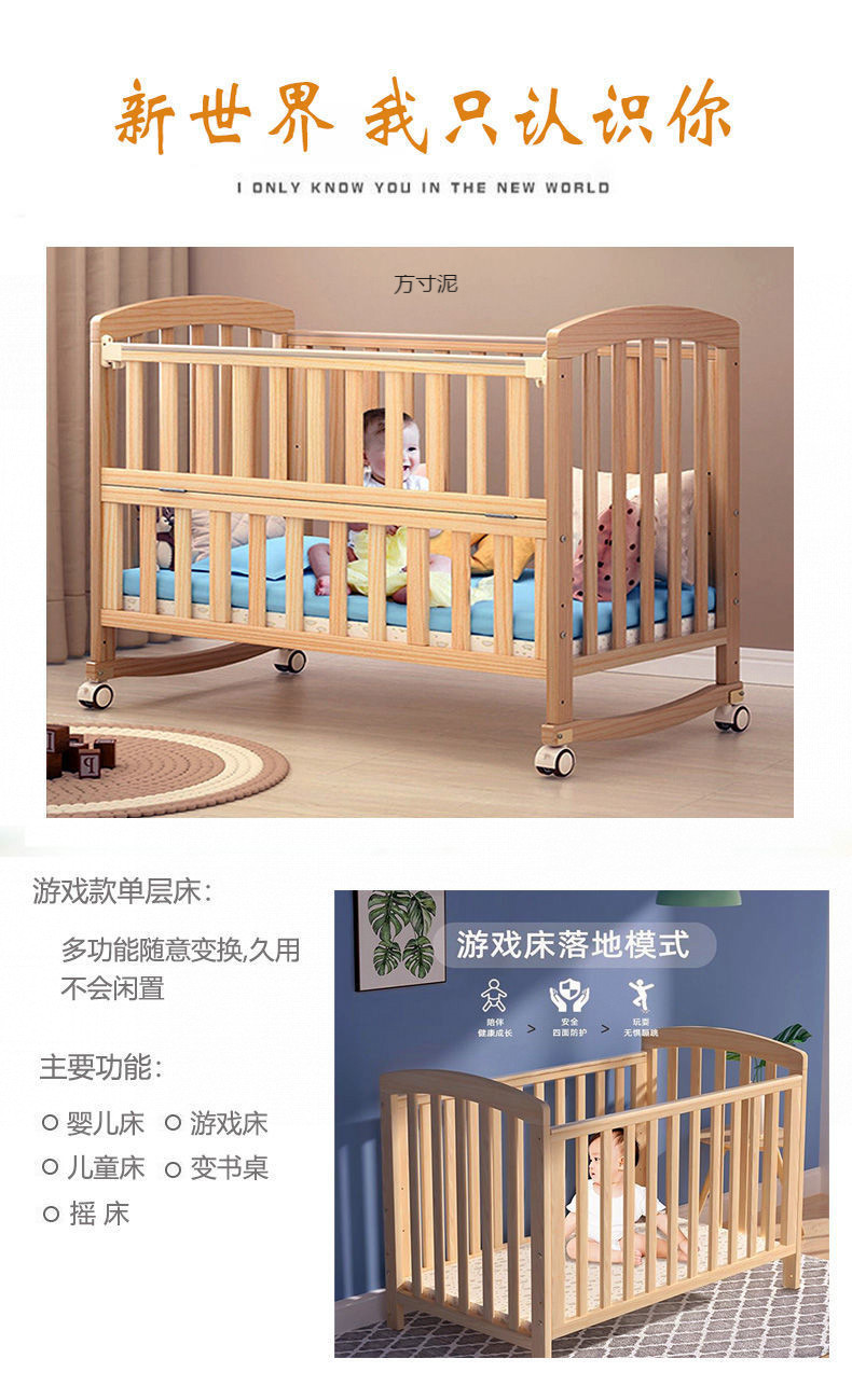 Многофункциональная кроватка из массива дерева, приподнятая детская кровать, трансформируемый стол, детская кровать, простая люлька, сплошная большая кровать от производителя