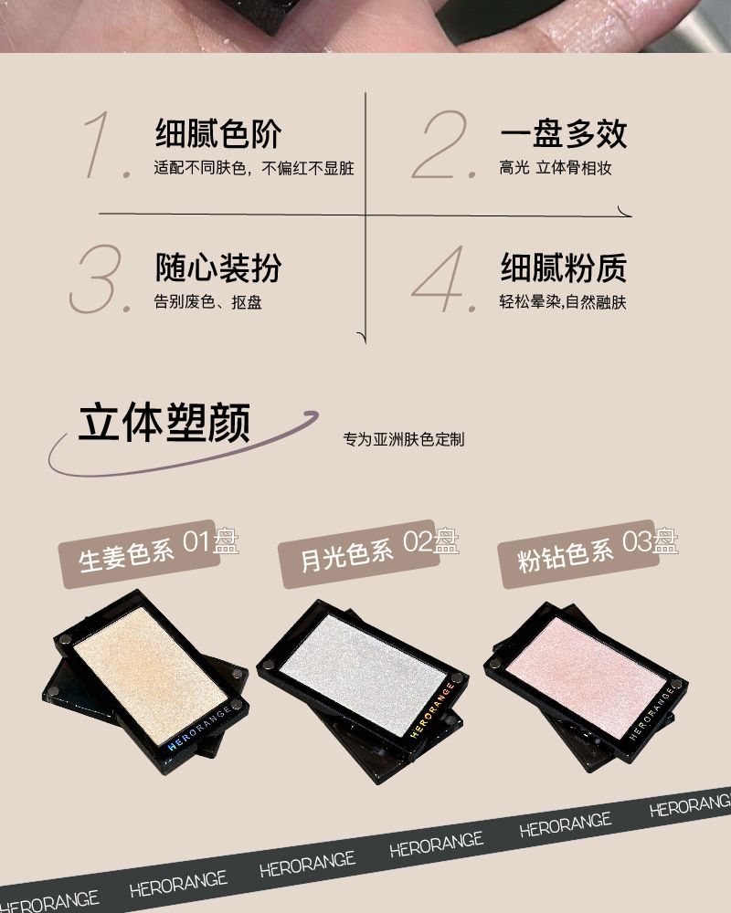 HERORANGE ~ Пудра для выделения света и тени, перламутровая, мелкий блеск, натуральный осветляющий макияж, трехмерный хайлайтер