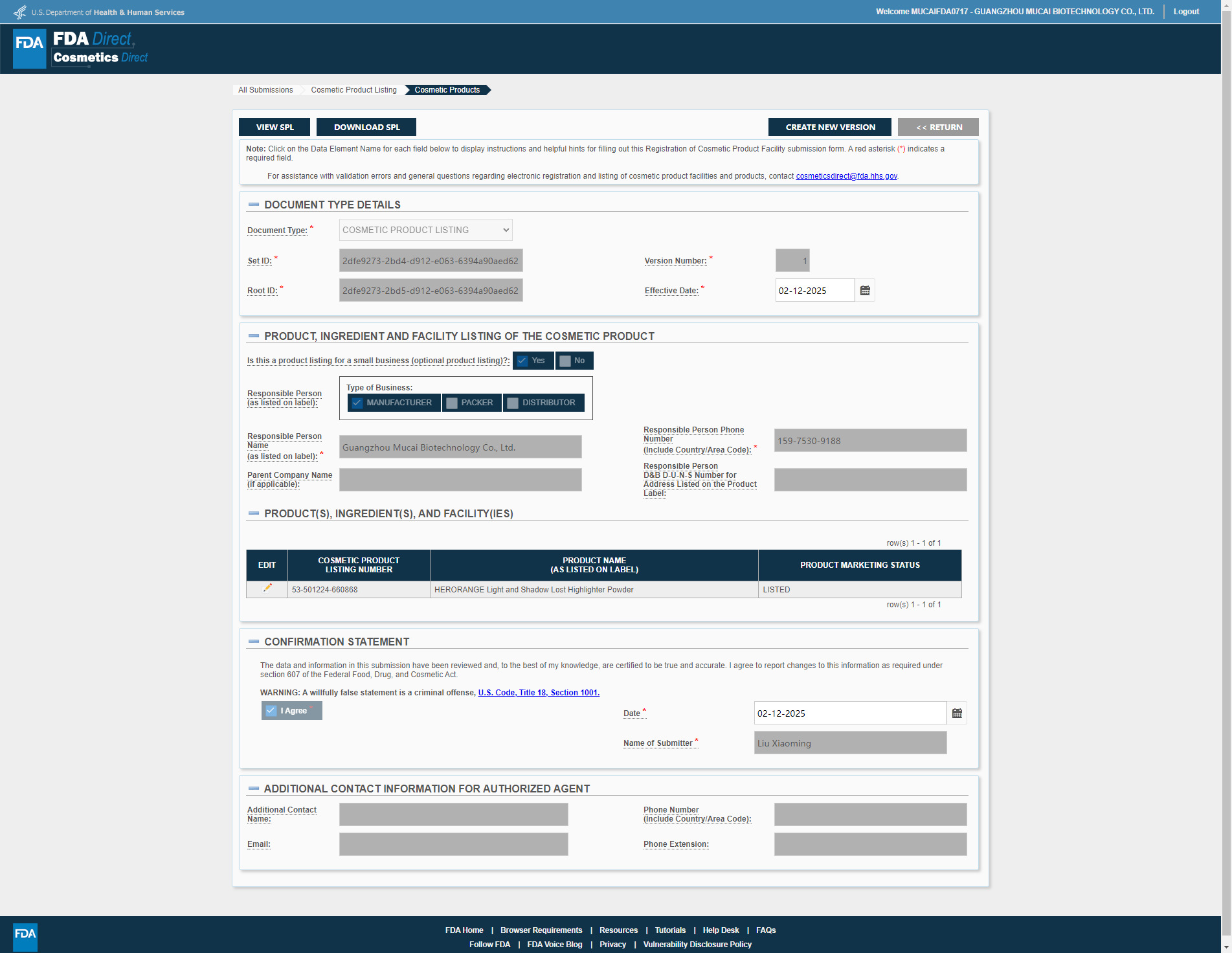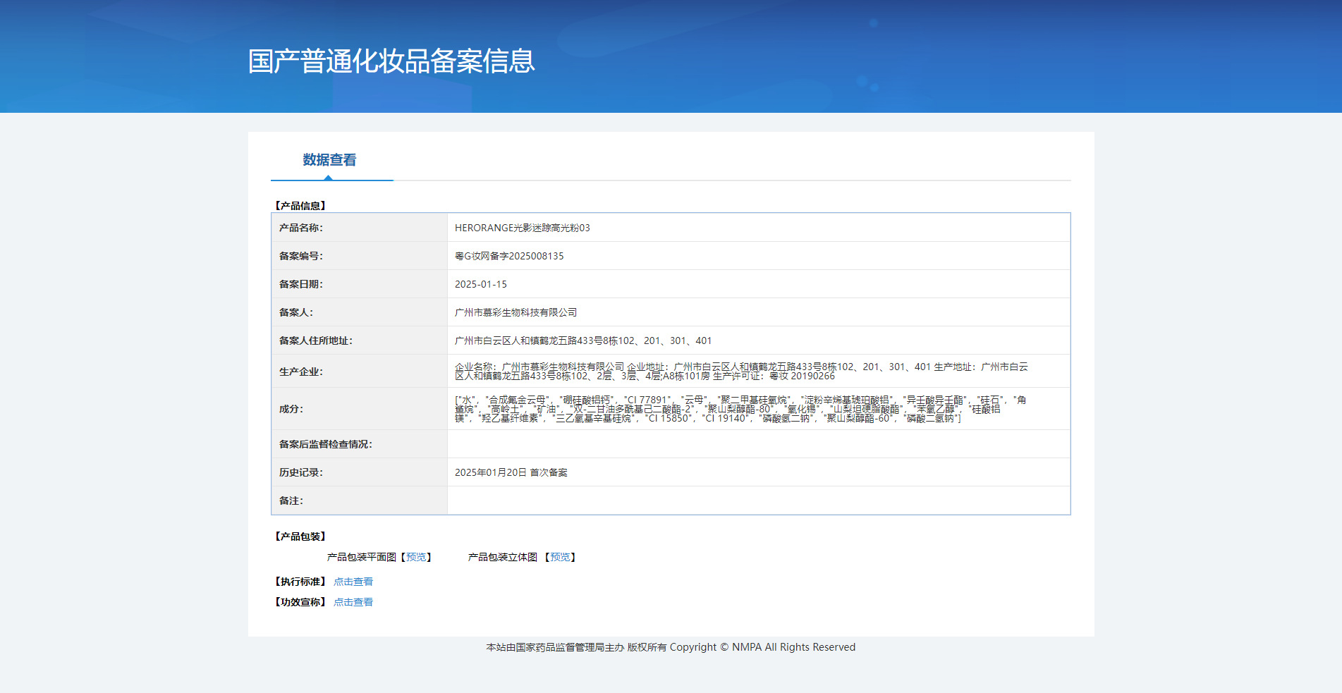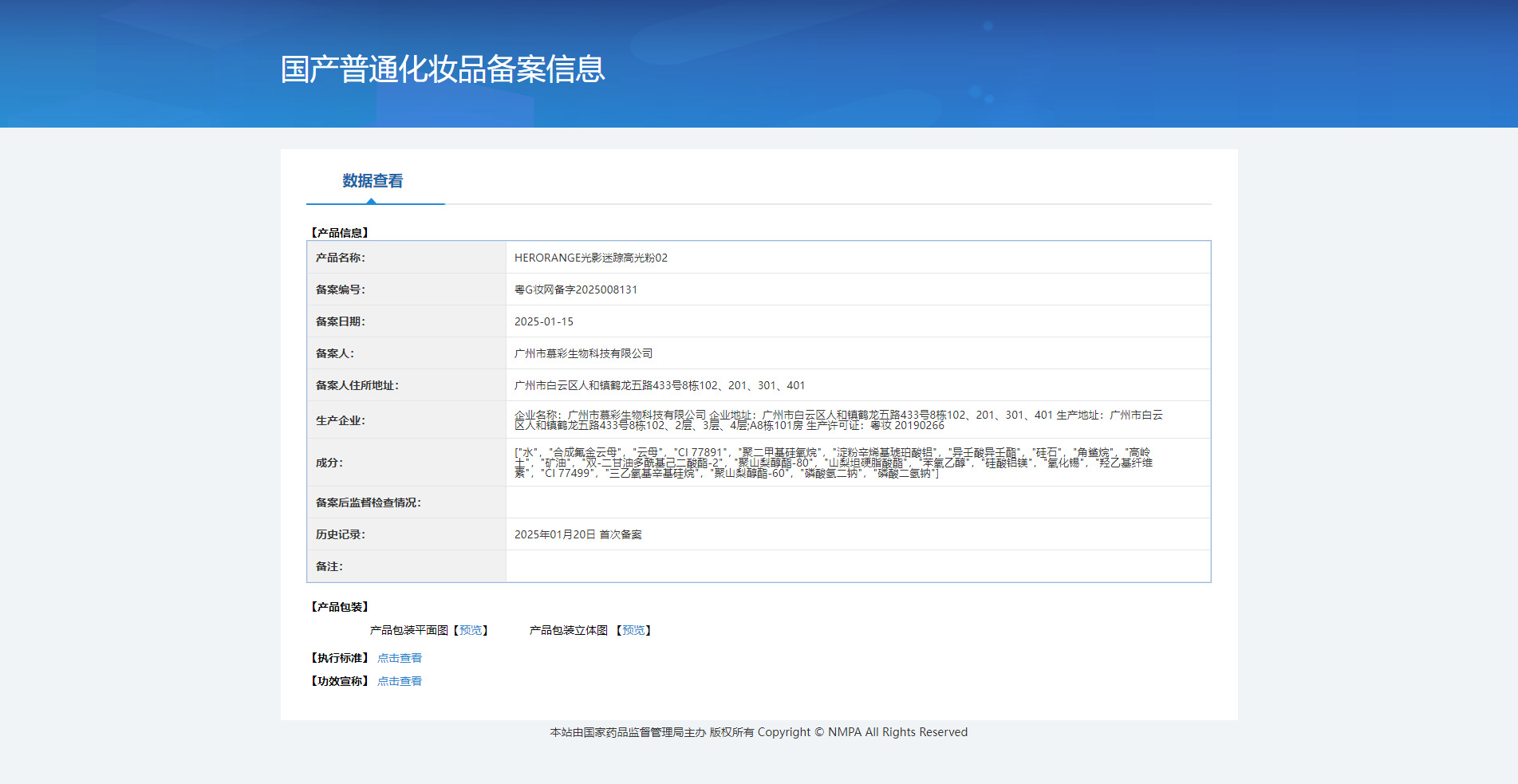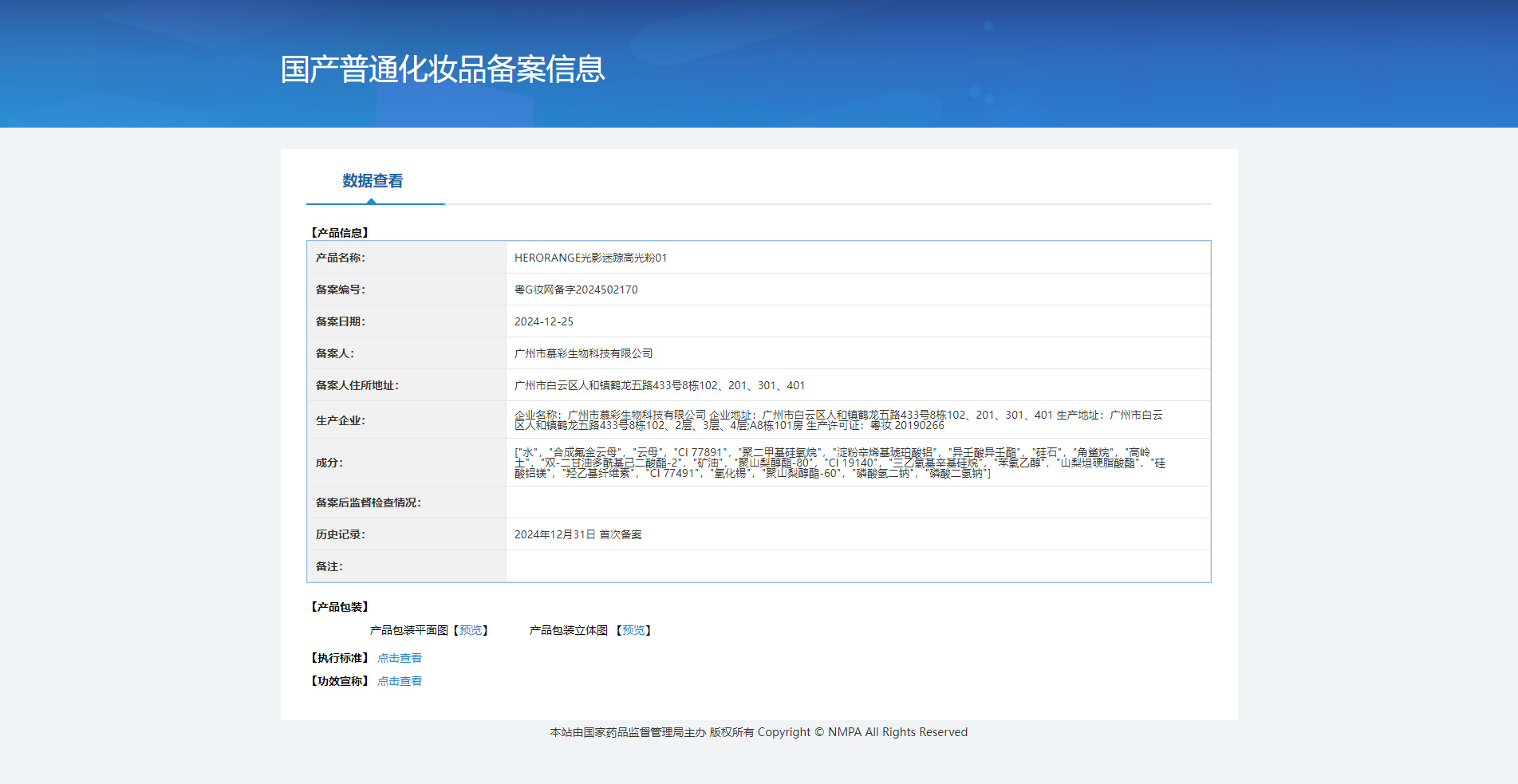 Номер сертификата регистрации несpecial косметики Guangdong g makeup network preparation number 2024502170