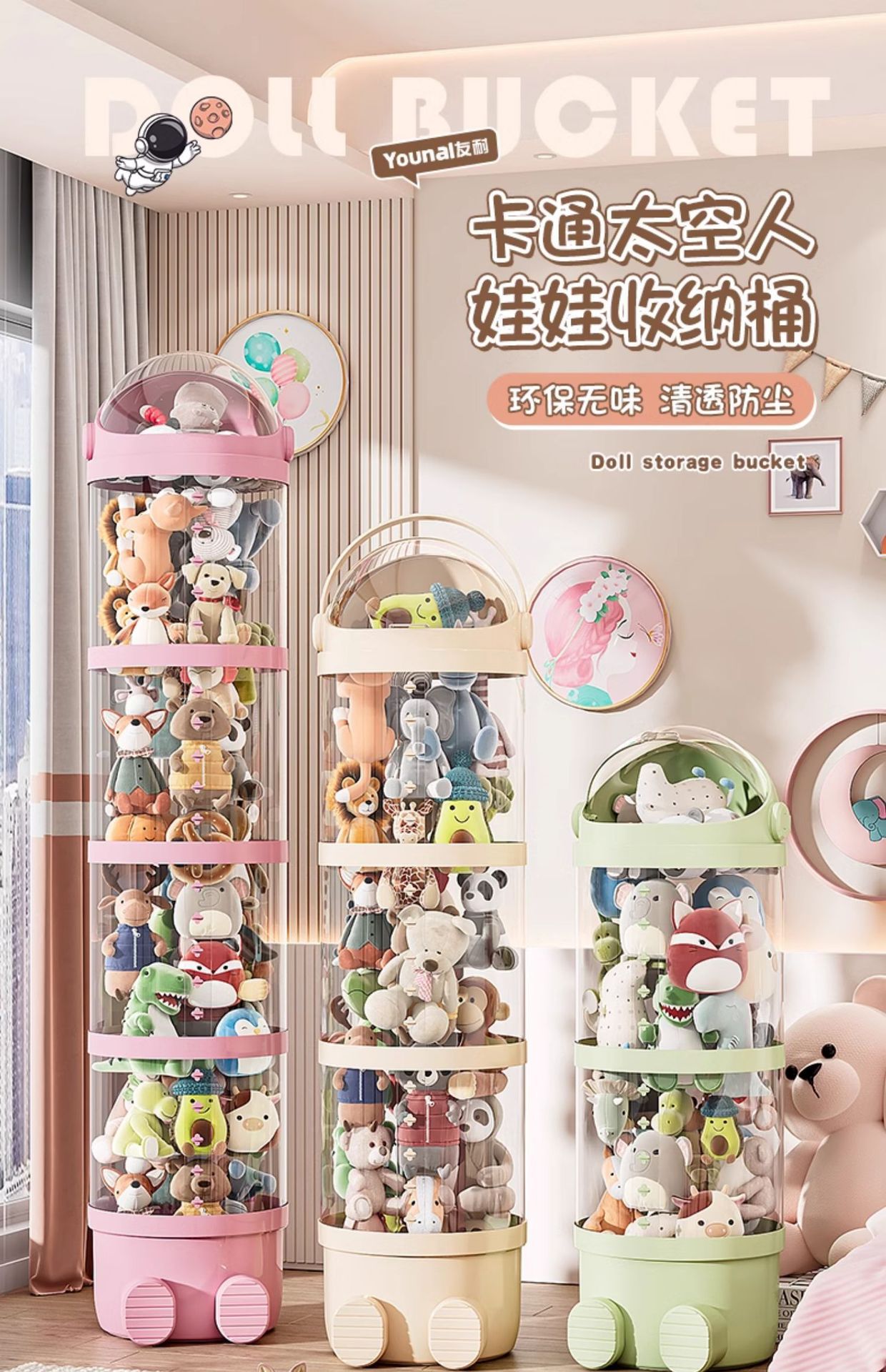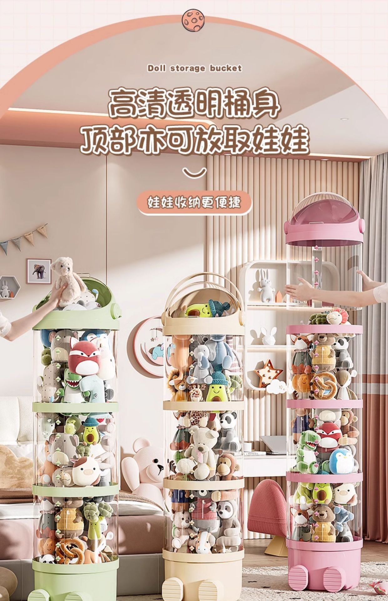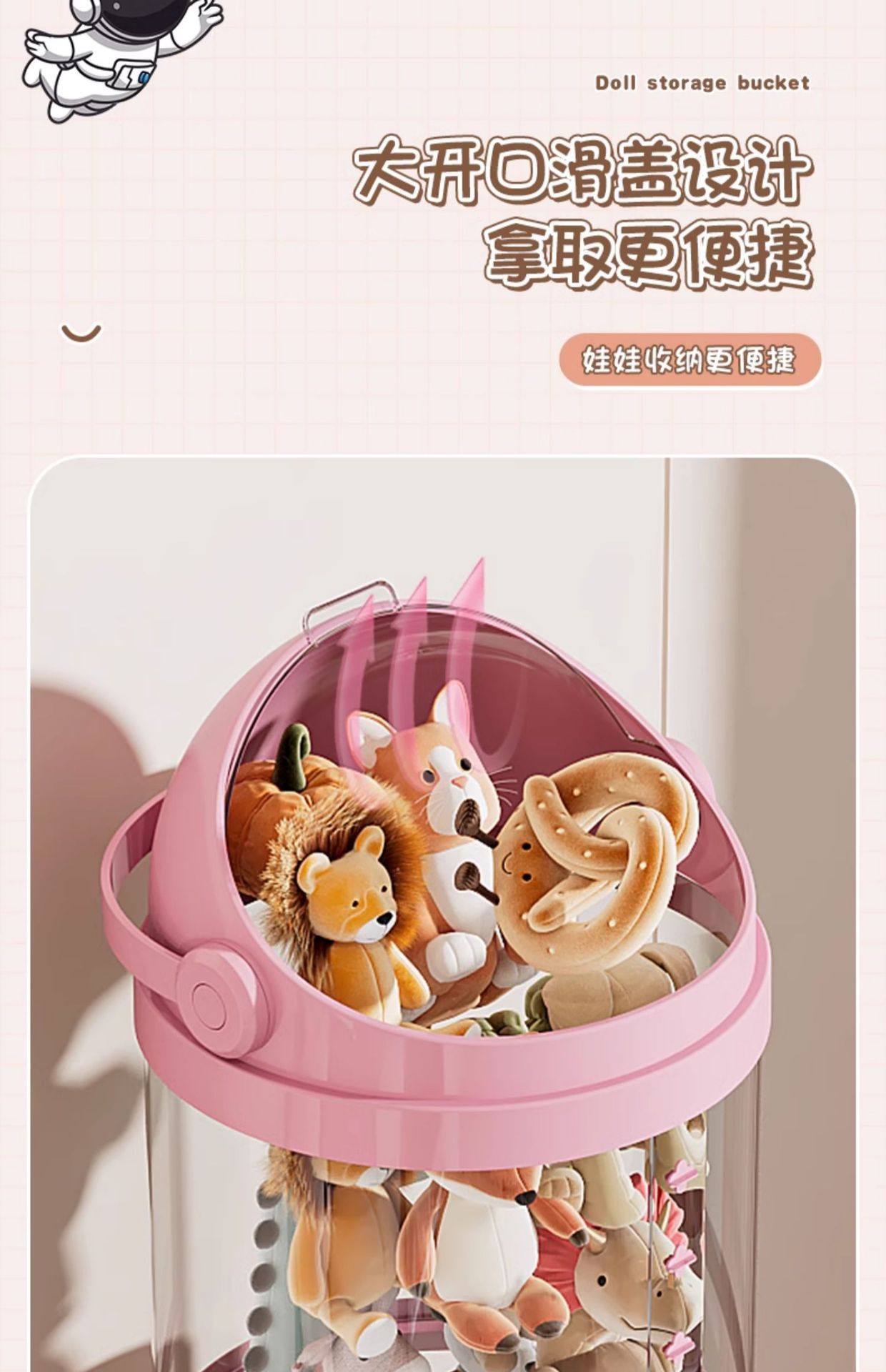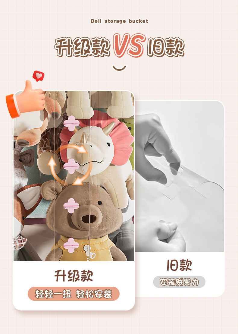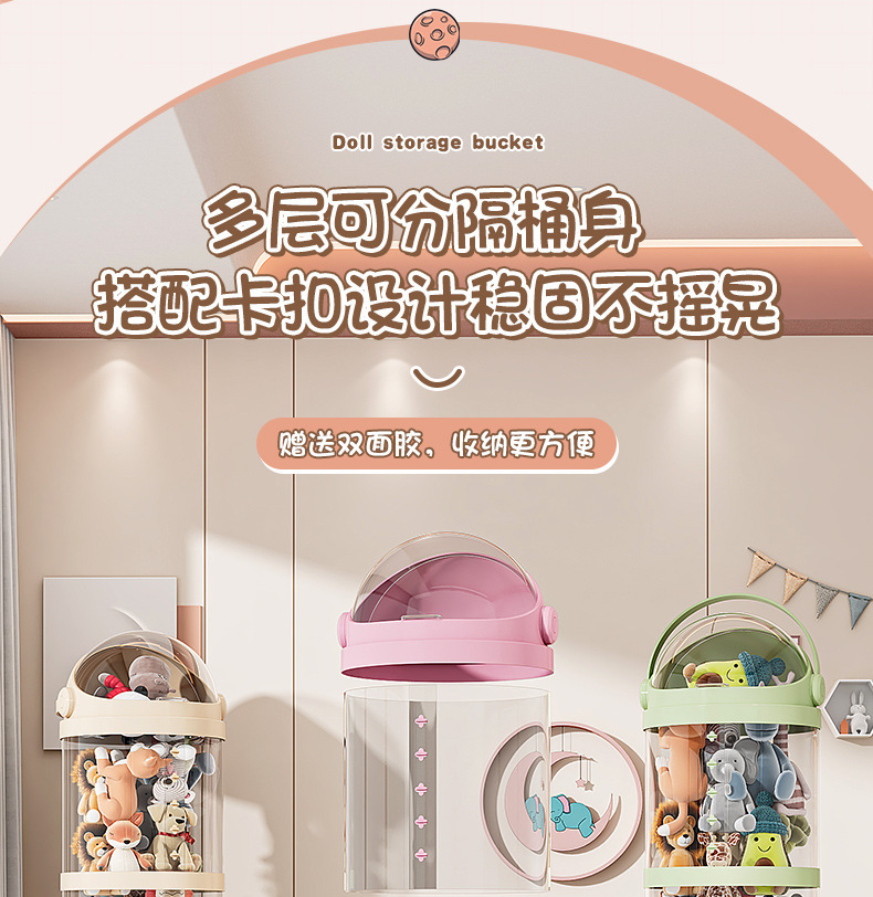 Улучшенное ведро для хранения плюшевых игрушек Корзина для хранения кукол Прозрачное ведро для игрушек детей