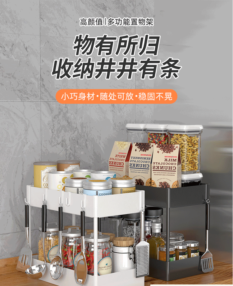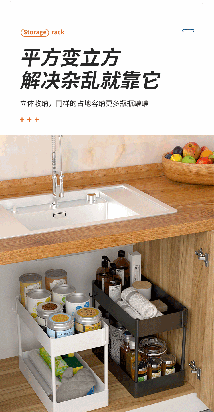 Amazon Выдвижной двухуровневый стеллаж под раковину Кухонная коробка для хранения Многофункциональный стеллаж для специй