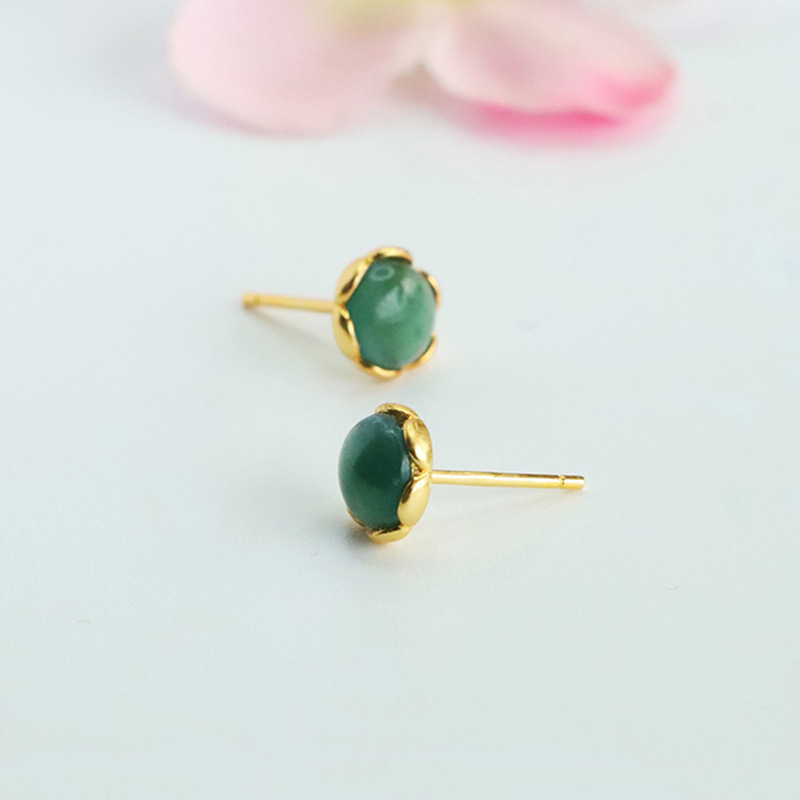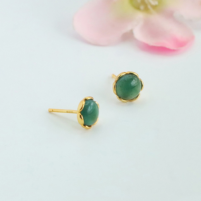 Название продукта S925 silver inlaid blue water jade bud earrings
