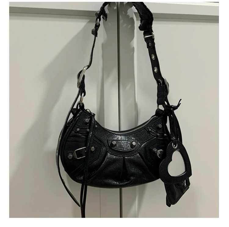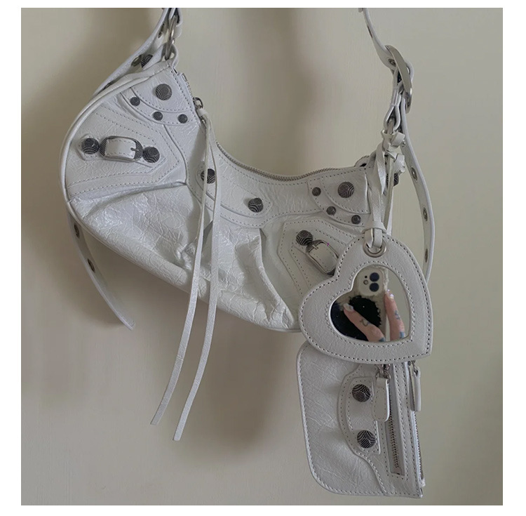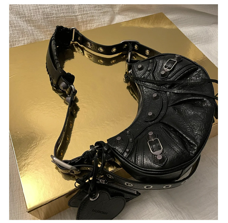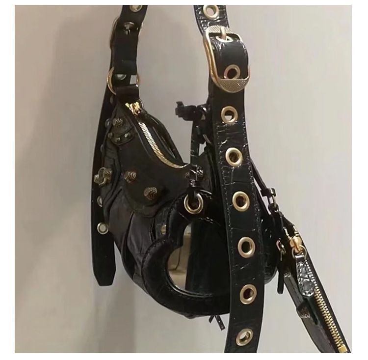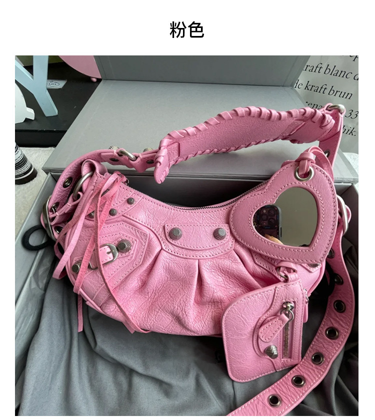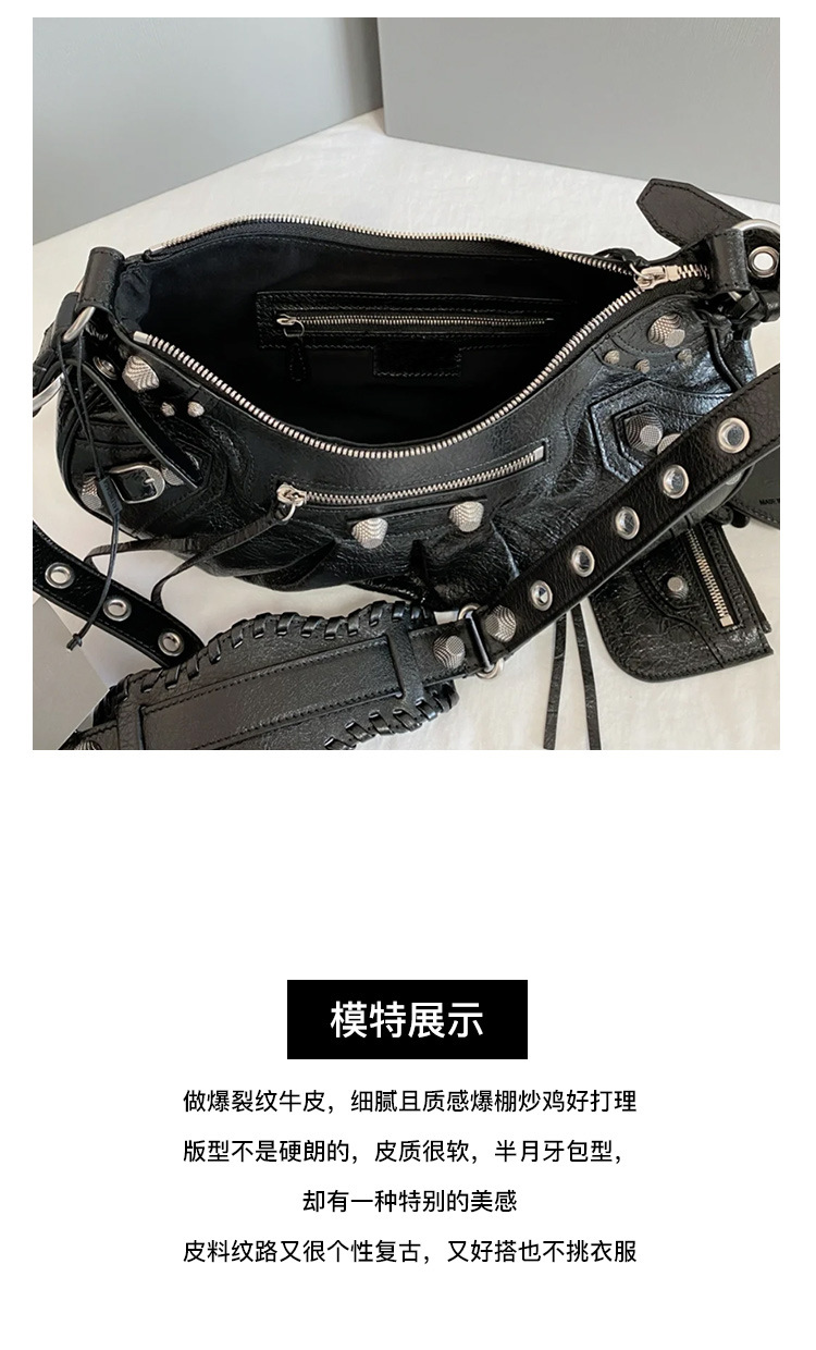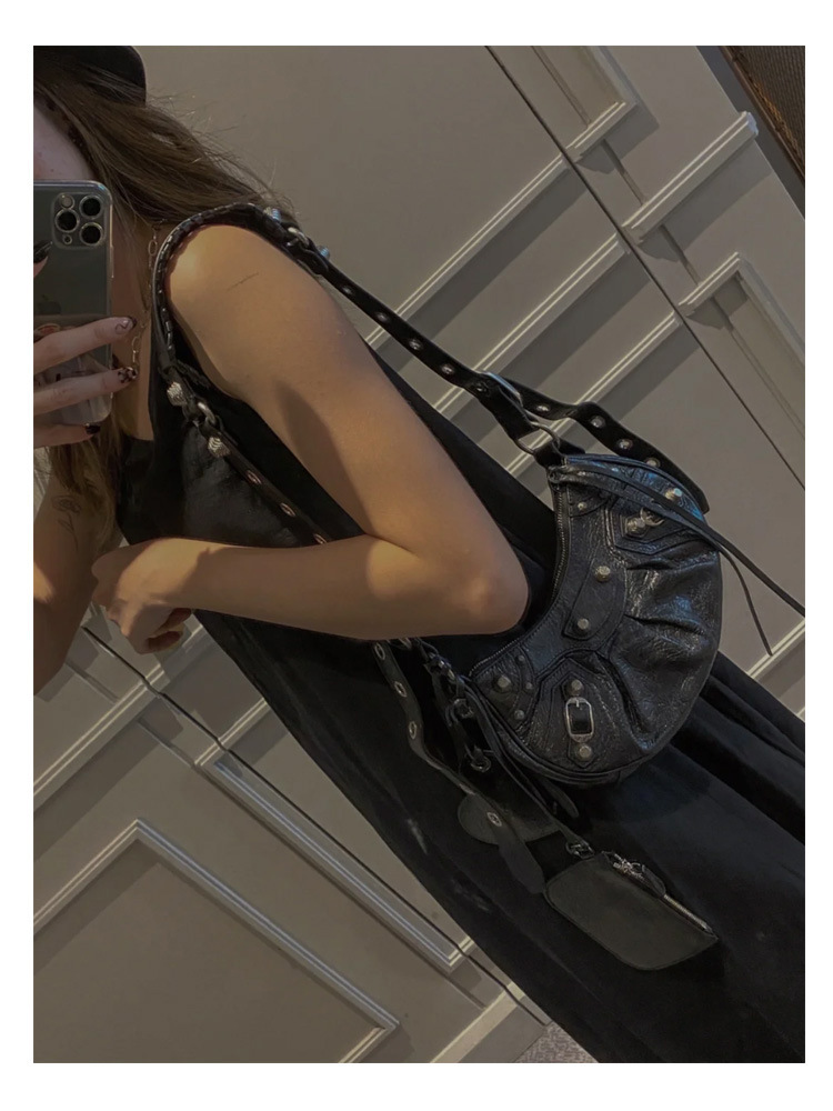 25 Новая женская сумка мотоциклетная, сумка подмышка, заклепки, кисточки, три в одном, полукруглая, складная, из коровьей кожи, через плечо