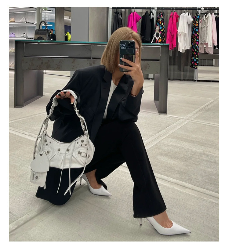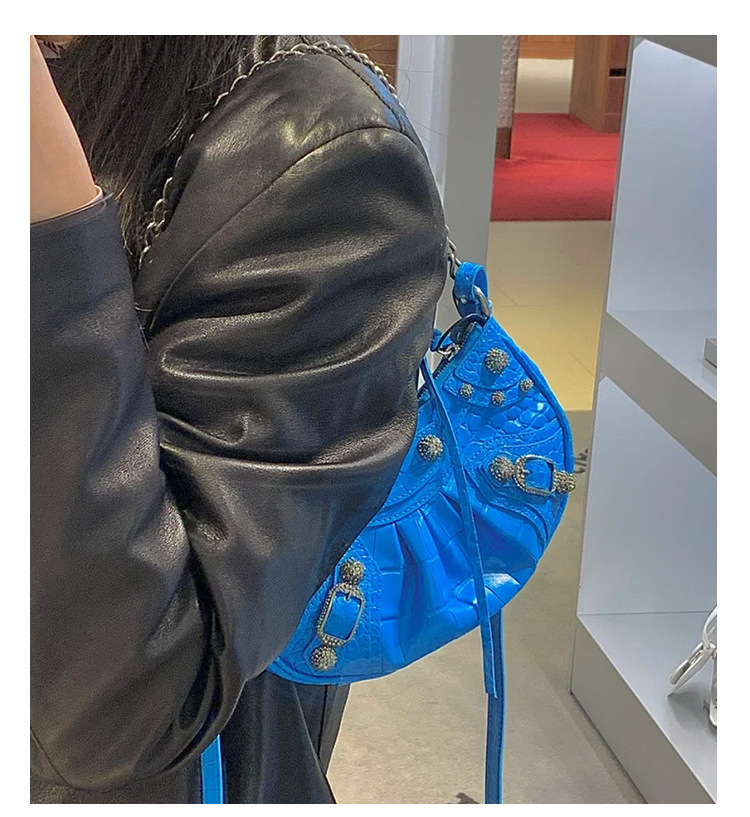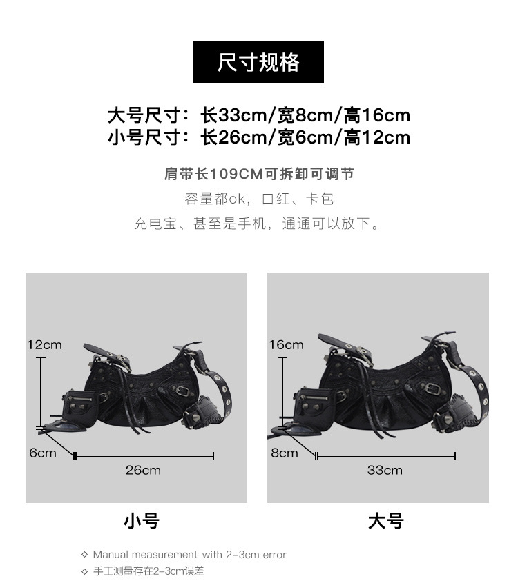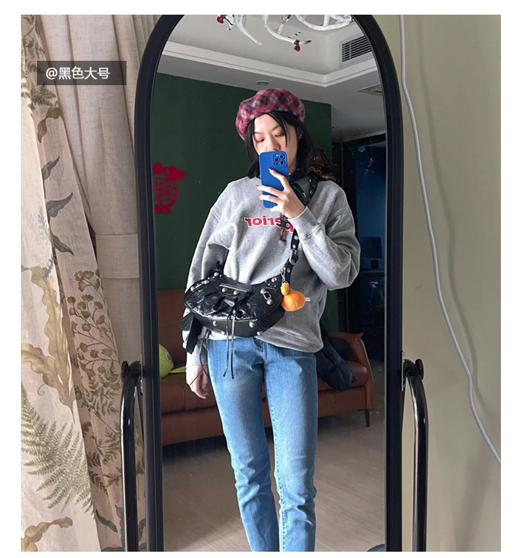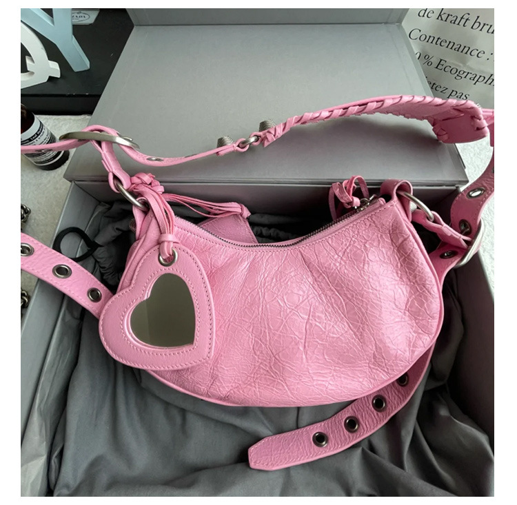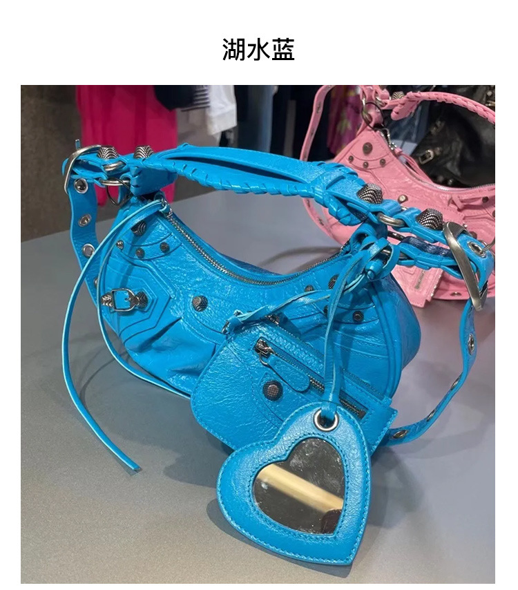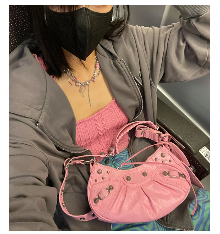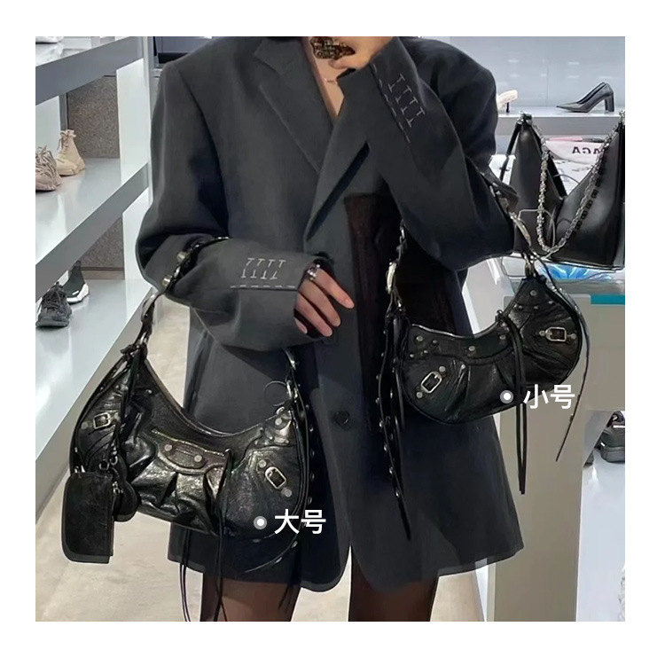 25 Новая женская сумка мотоциклетная, сумка подмышка, заклепки, кисточки, три в одном, полукруглая, складная, из коровьей кожи, через плечо