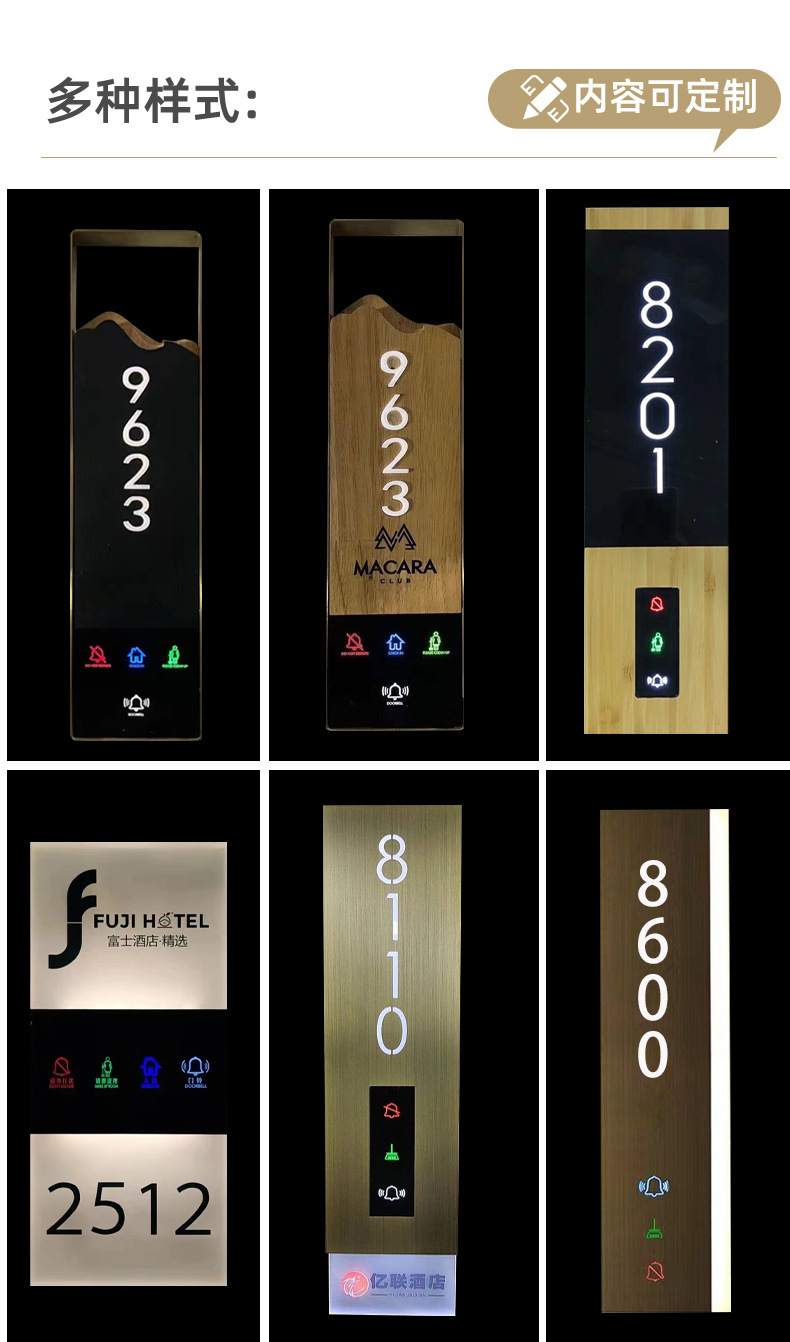 酒店智能门牌门显宾馆会所公寓电子房号触摸门铃酒店发光门牌厂家