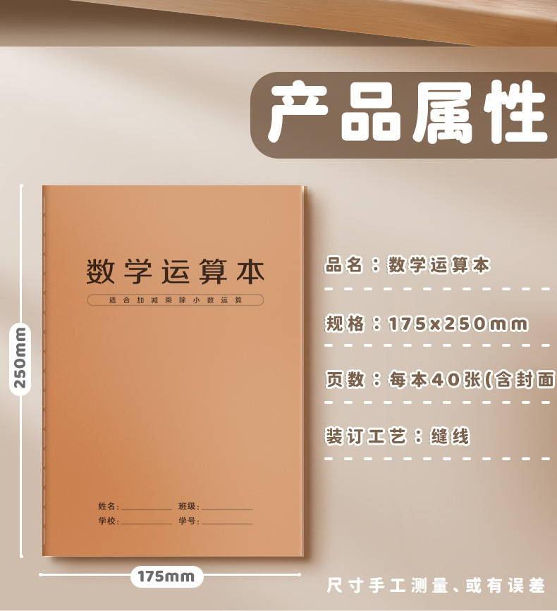 Тетрадь по математике, переплетенная кожаная тетрадь B5, тетрадь для расчетов, бумага для практики ментальной арифметики