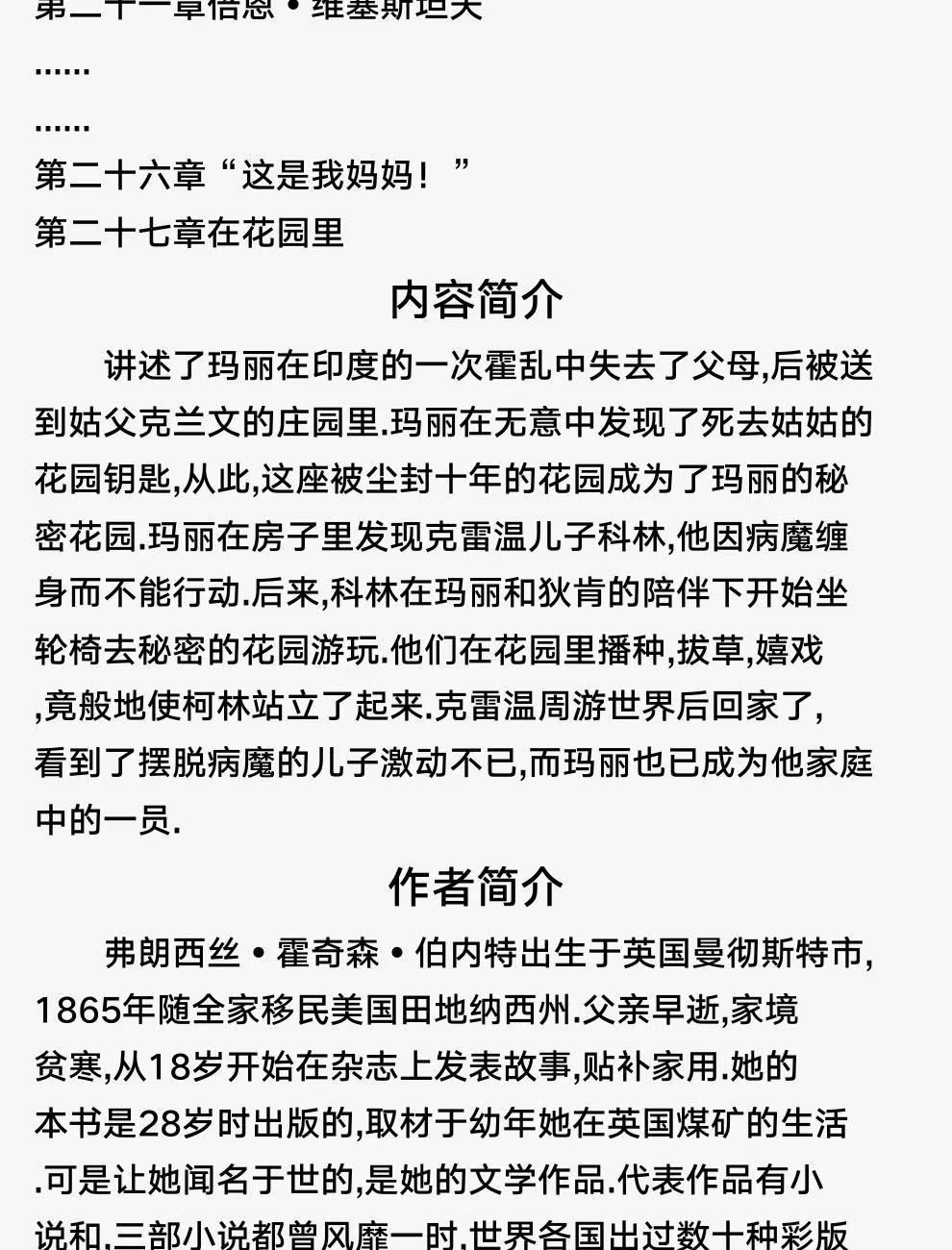 Секретный сад, полный перевод классических известных переводов, поддерживающий чтение вне класса