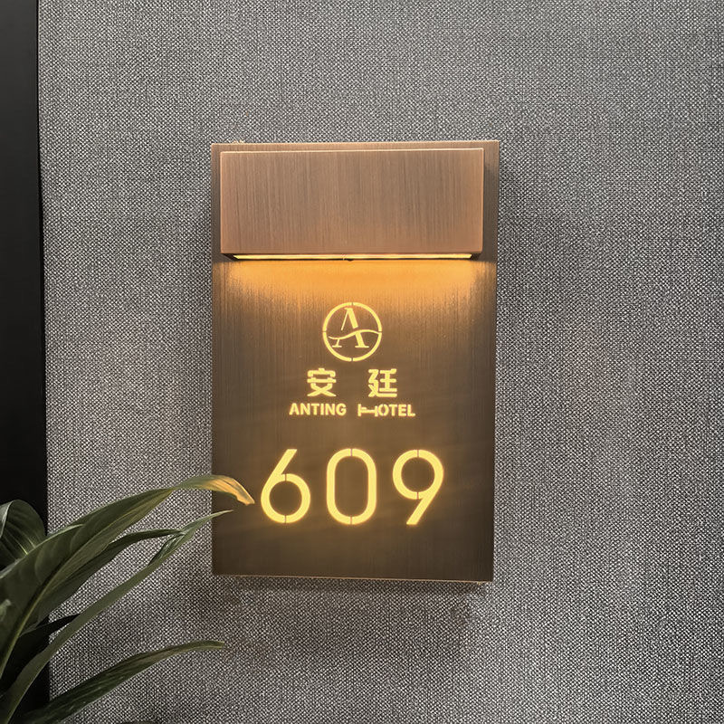 Номер двери из нержавеющей стали для отеля с LED подсветкой, простой номер двери для KTV