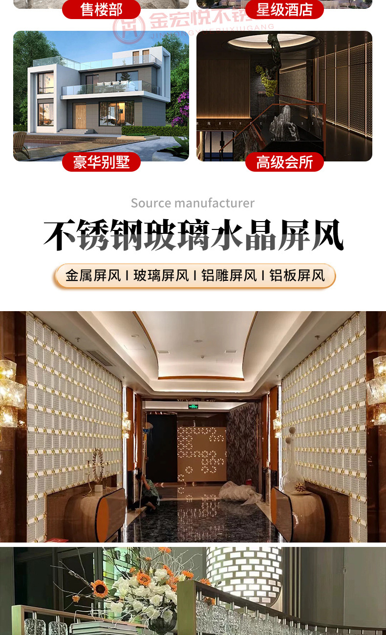 Легкая роскошная перегородка из нержавеющей стали и стекла для гостиниц