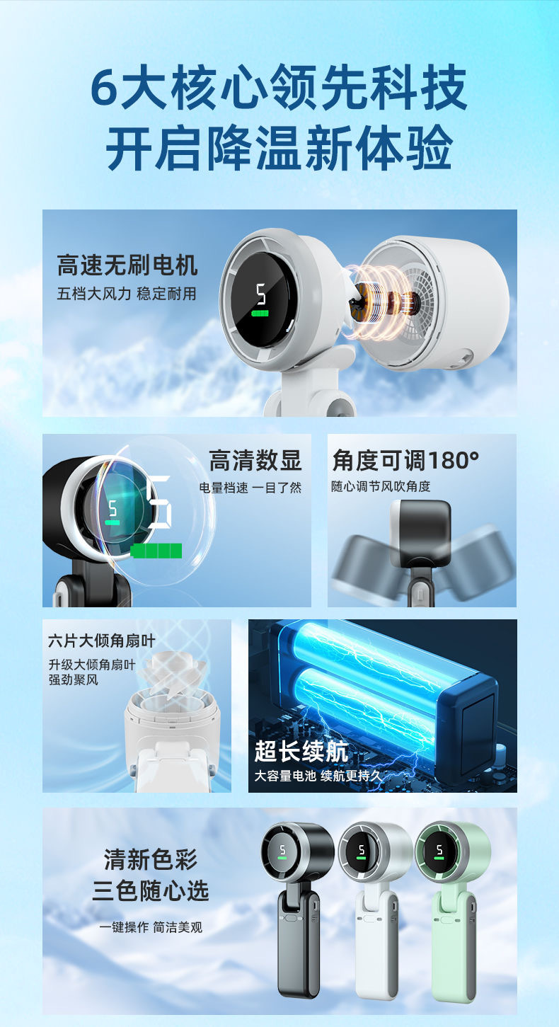 2025 новый высокоскоростной ручной мини мощный вентилятор с подвесной шеей складной наружный офисный бесшумный