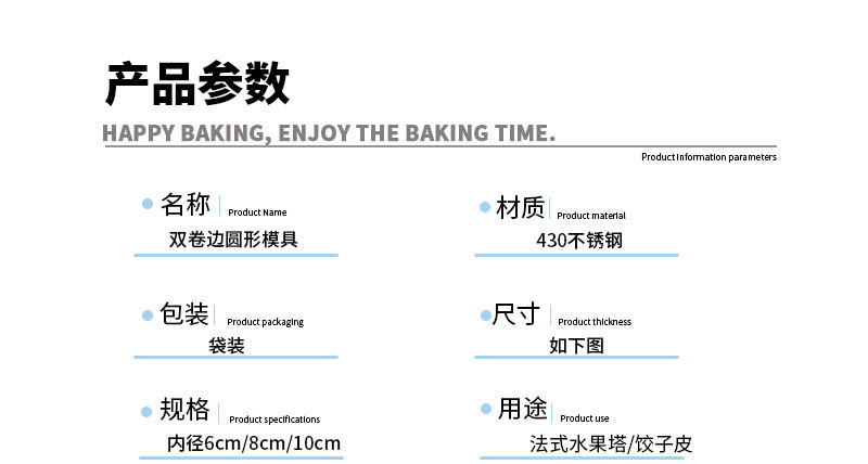 Кольцо для выпечки из нержавеющей стали 430, круглое, с двойным закатанным краем, для лимонного тарталета, кексов, печенья