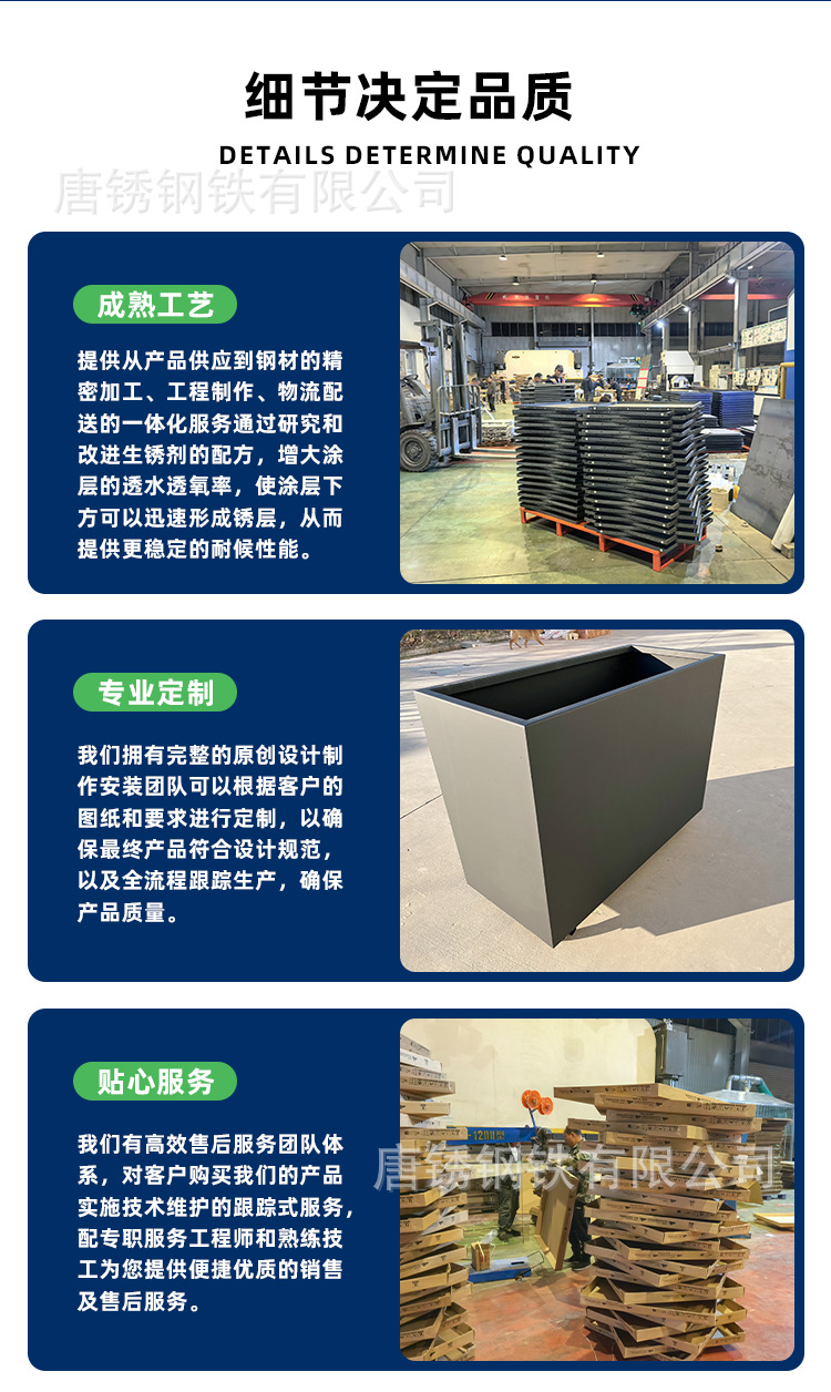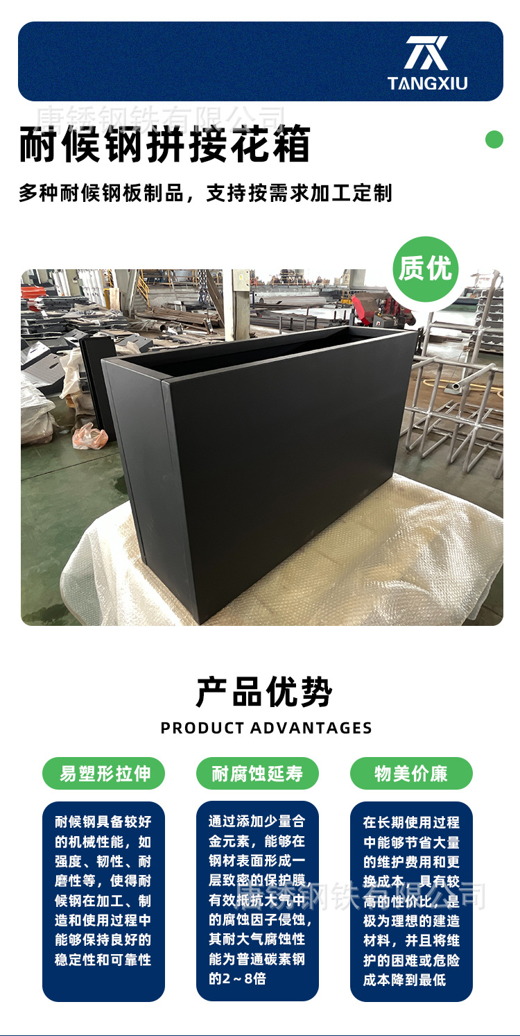 Кастомизированный цветной ящик для цветов из стали Q235Nh, железный ящик для цветов цвета ржавчины, комбинированный ящик для растений