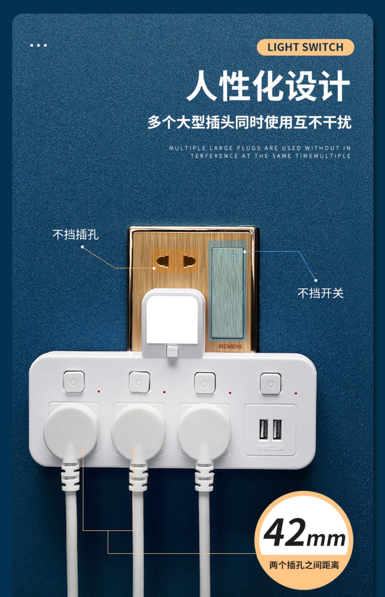 ![]() | One to three [with switch + night light + 2 usb] 1 piece | ¥13.6 / ≈ 166 ₽ | 999 | 5808968925995 | |