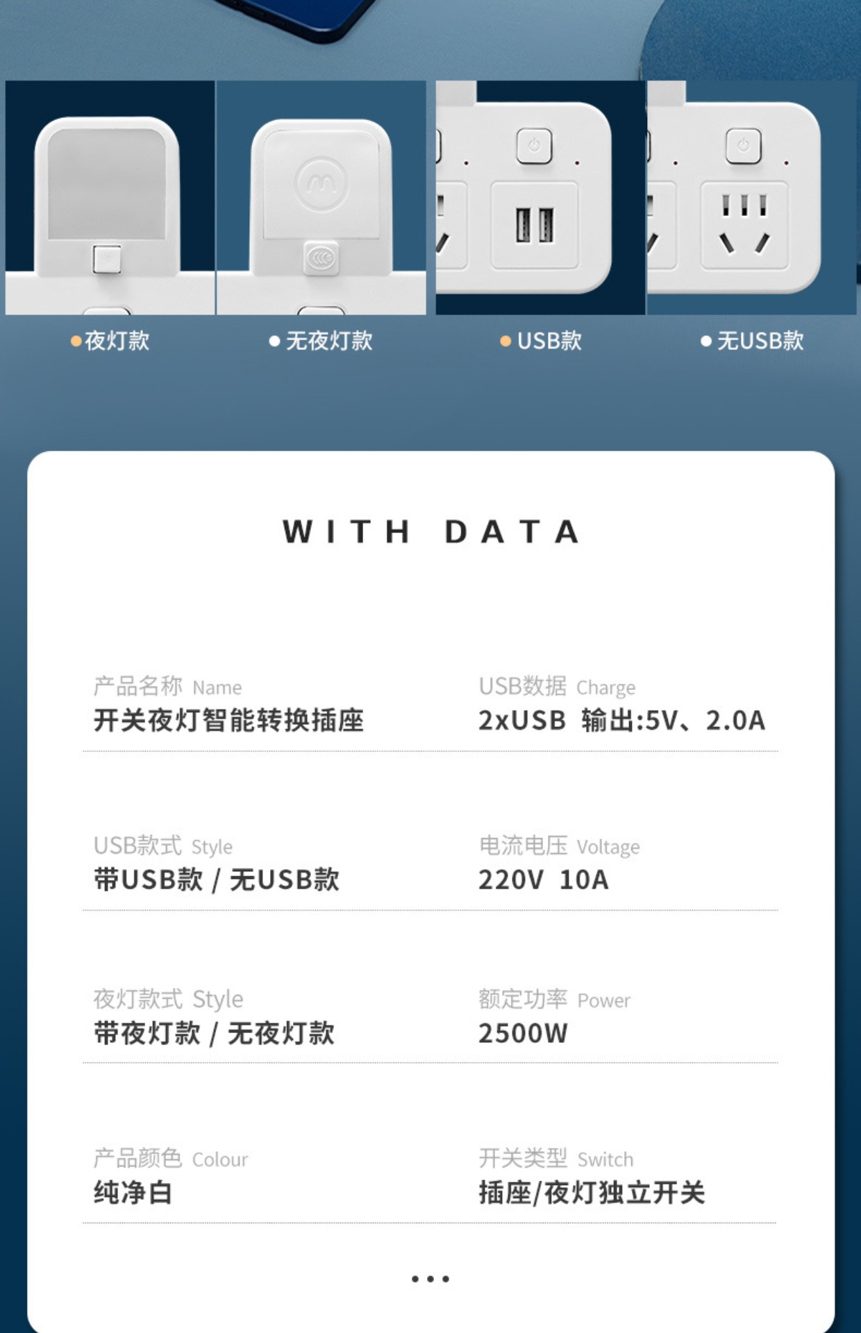 ![]() | One to two [with switch + night light + 2 usb] 1 piece | ¥10.06 / ≈ 122 ₽ | 964 | 5808968925994 | |