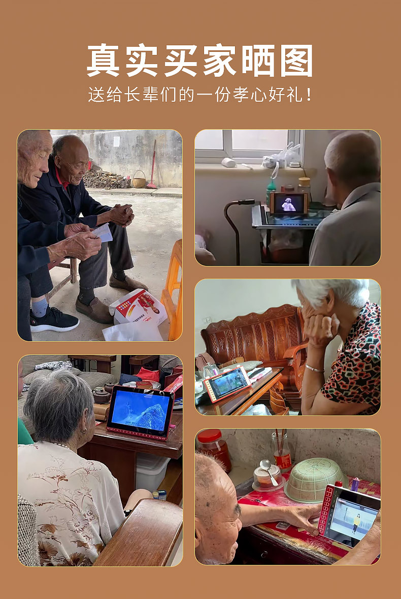 Старшие люди смотрят оперу, видеоплеер для танцев, слушают и поют оперу, радио для пожилых, специальный портативный маленький телевизор