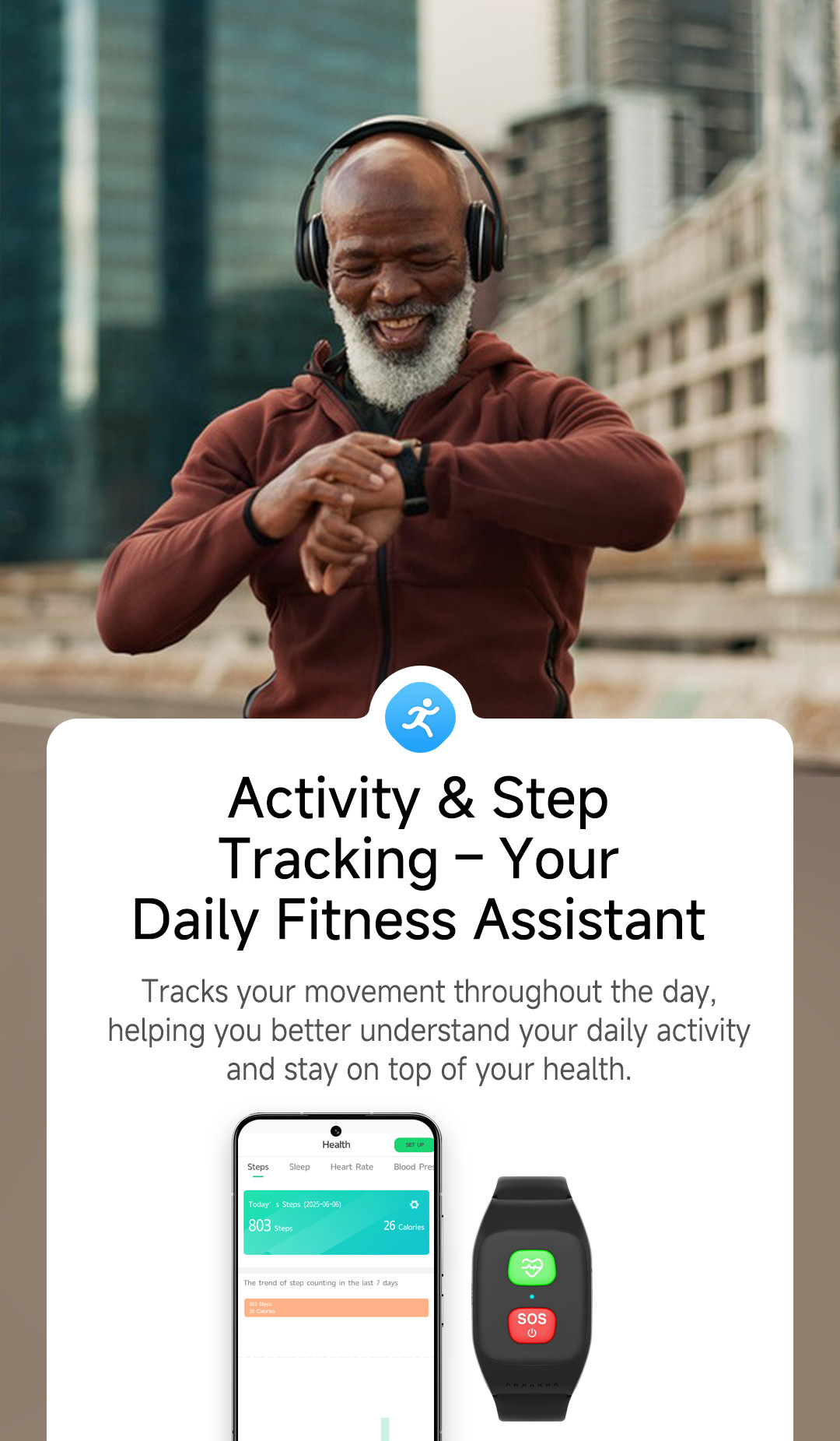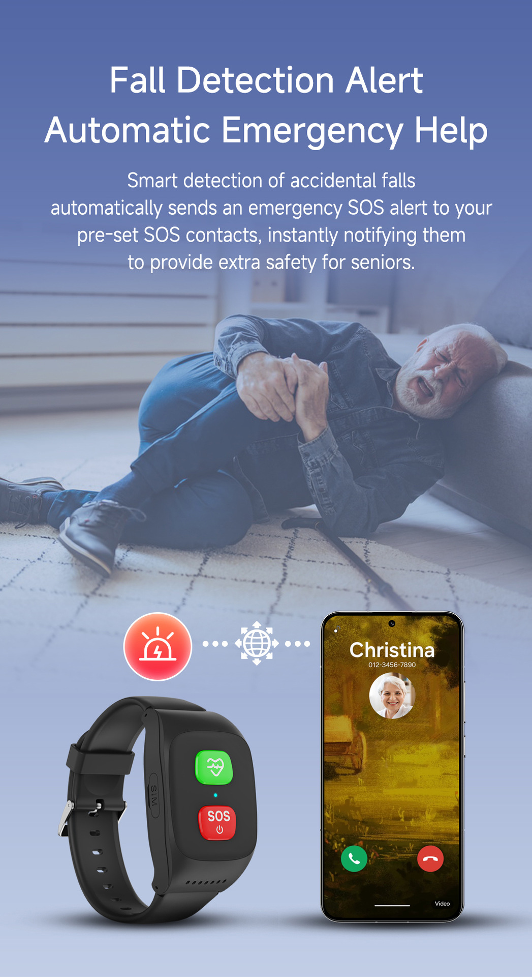 Умный 4G браслет для пожилых с GPS, измерение сердечного ритма, давления, температуры тела, защита от потери
