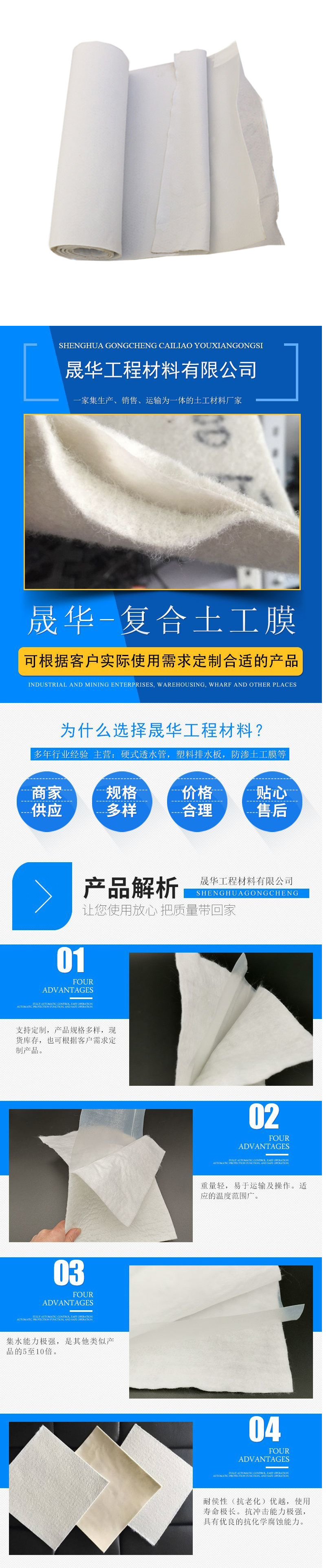 Прямые продажи с завода, композитная геомембрана для резервуаров, два слоя ткани и одна пленка, водонепроницаемый геотекстиль для прудов
