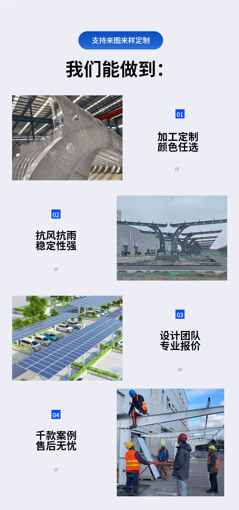 Солнечный фотогальванический навес для автомобилей, стальной каркас, новое энергетическое производство, парковка для автомобилей, стальная структура