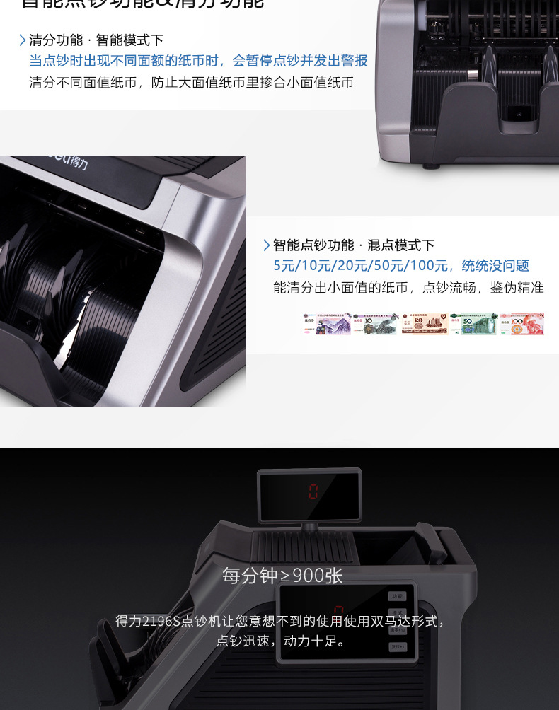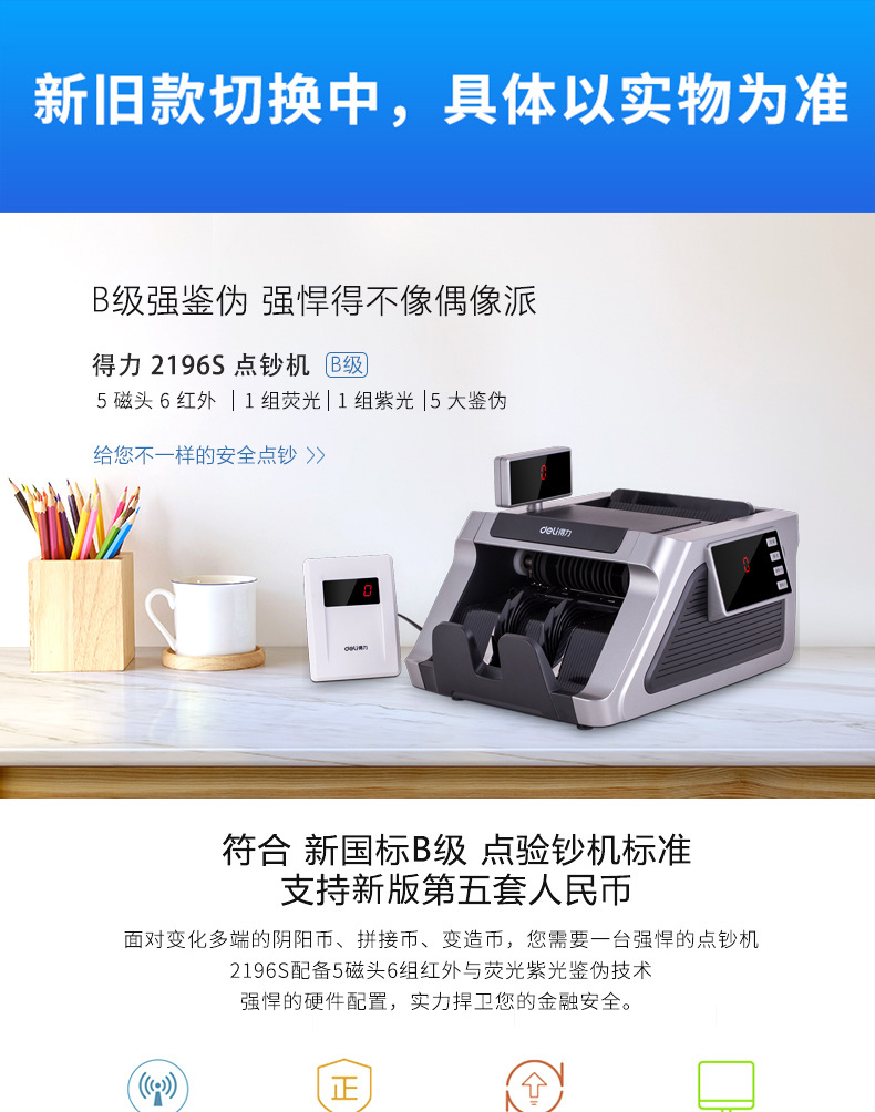 Дели 2196S новая модель детектора банкнот, компактный портативный кассовый аппарат RMB класса B для домашнего использования