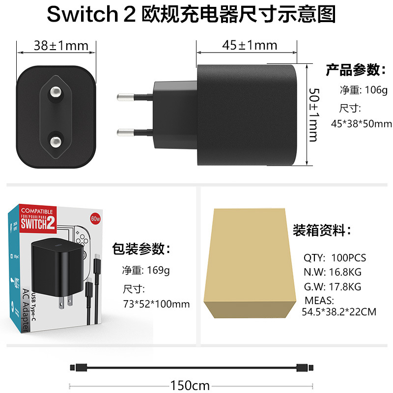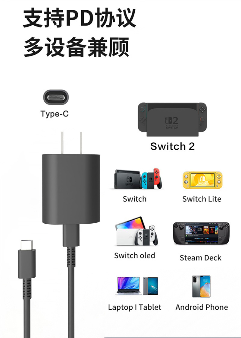 Блок питания Switch 2 для игровой консоли 60W, полностью совместим и поддерживает базовую проекцию