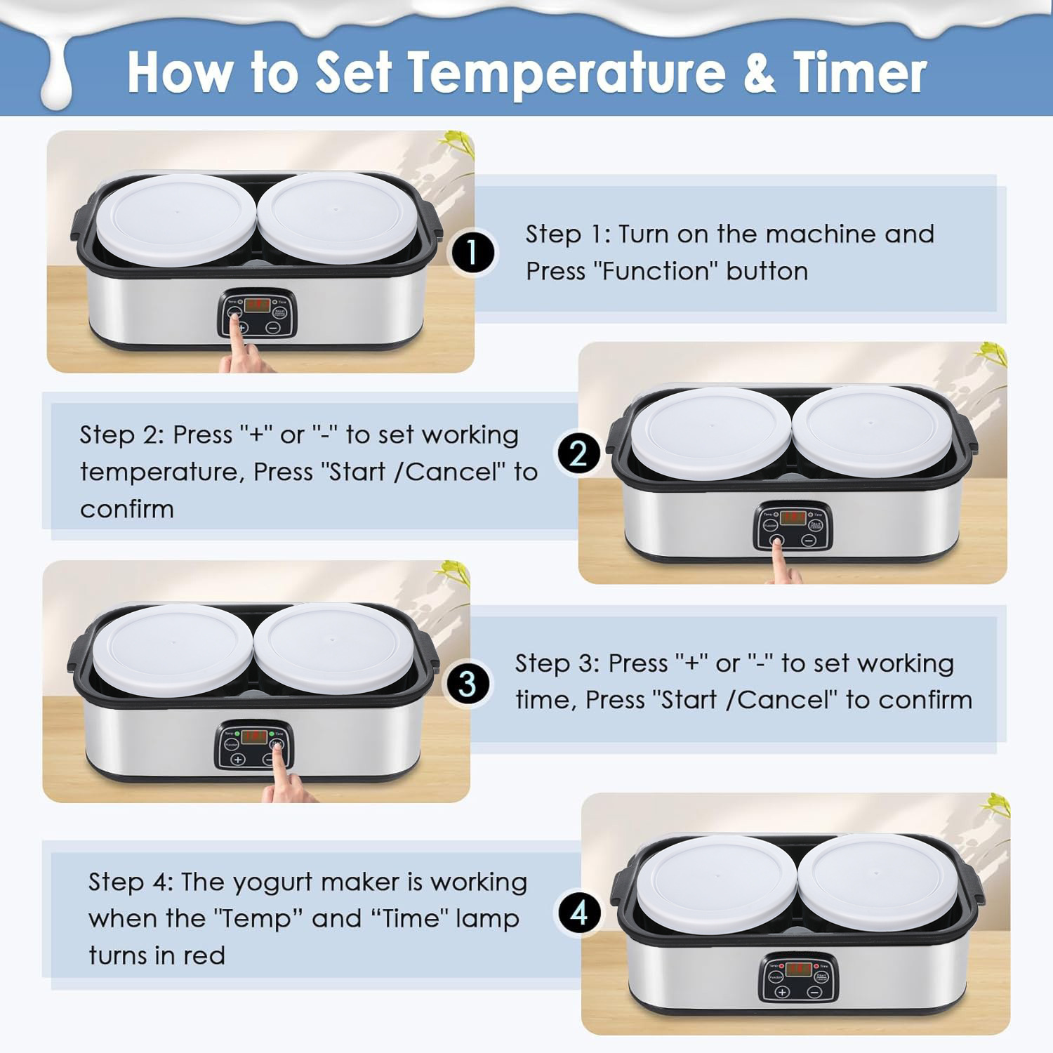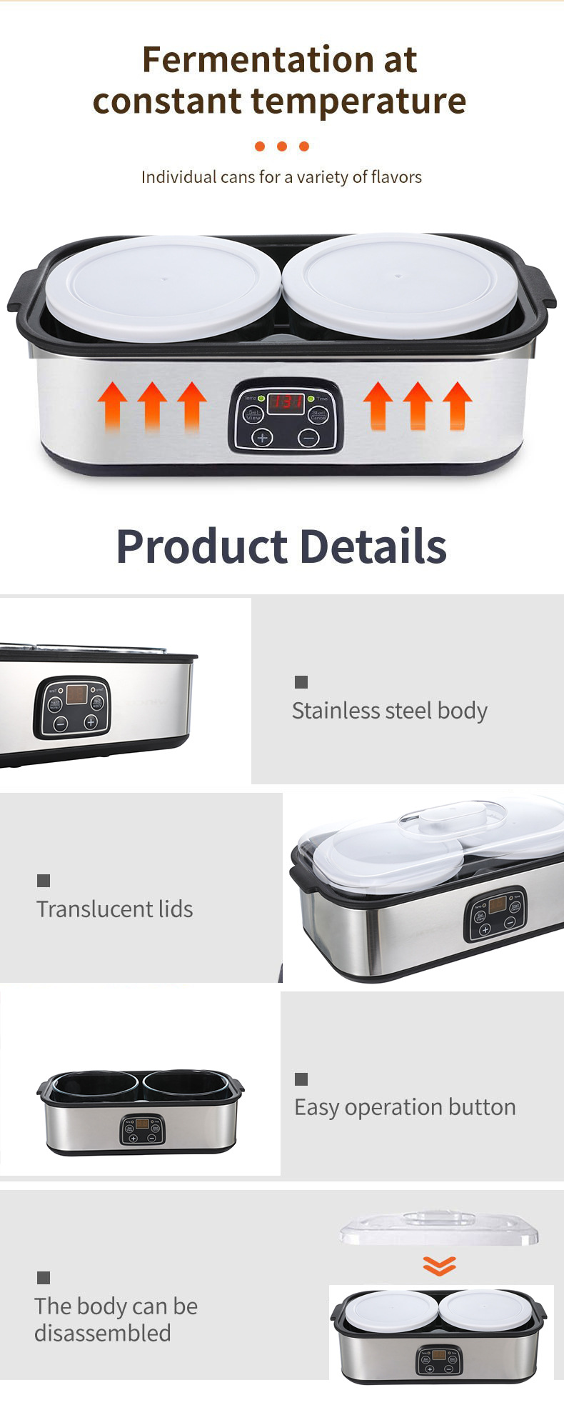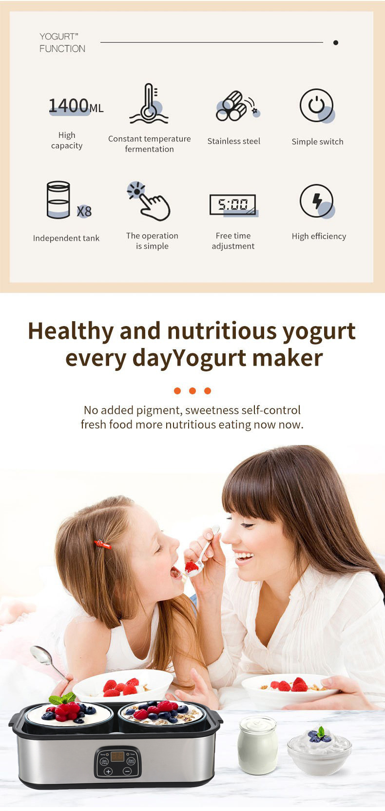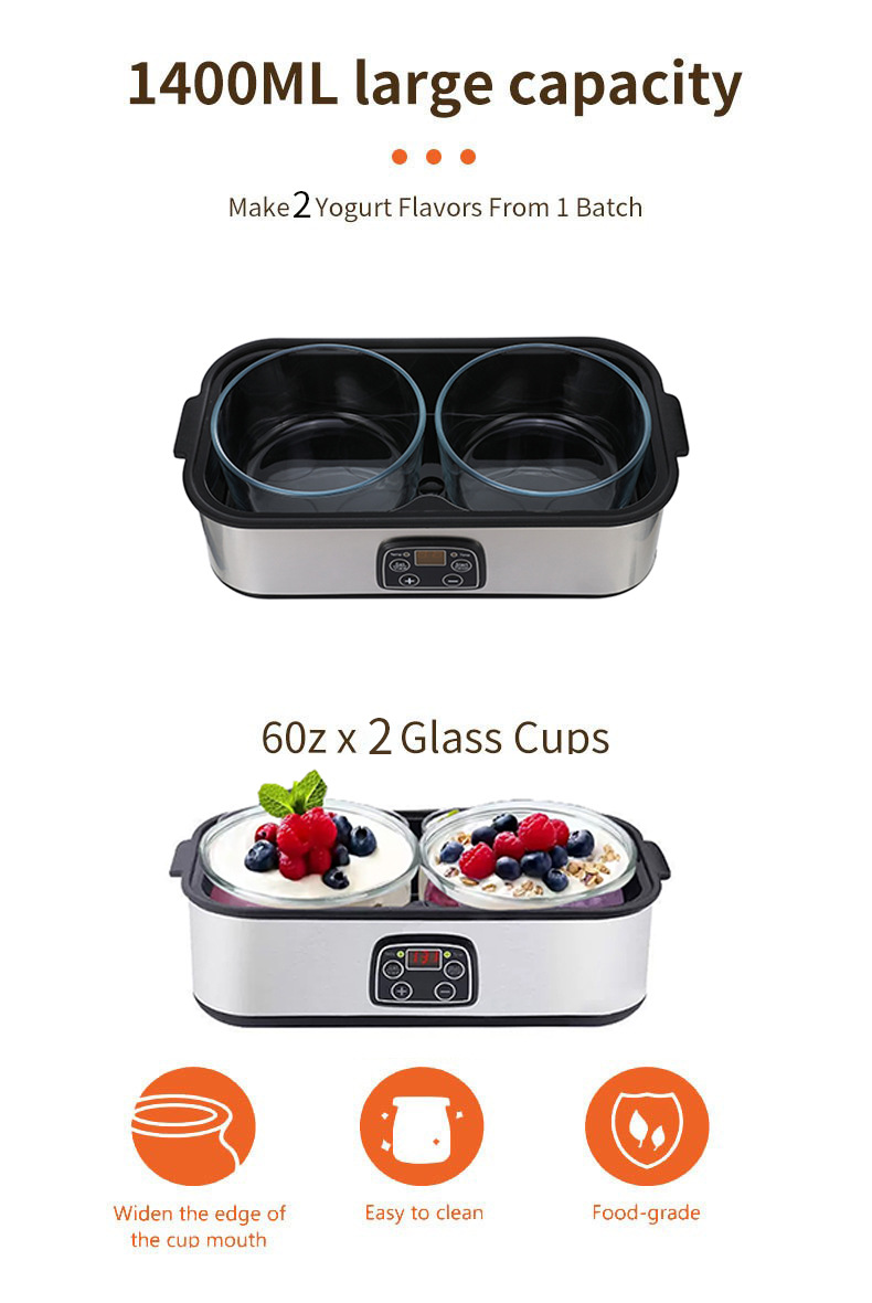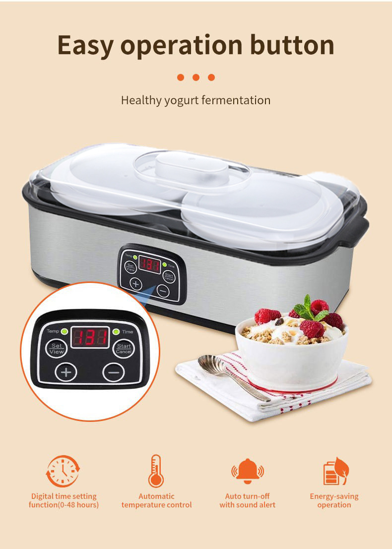 Машина для йогурта на 2 чашки, 2L, джем, мороженое, пудинг, завтрак, домашняя машина для ферментации йогурта
