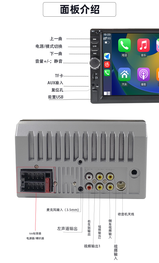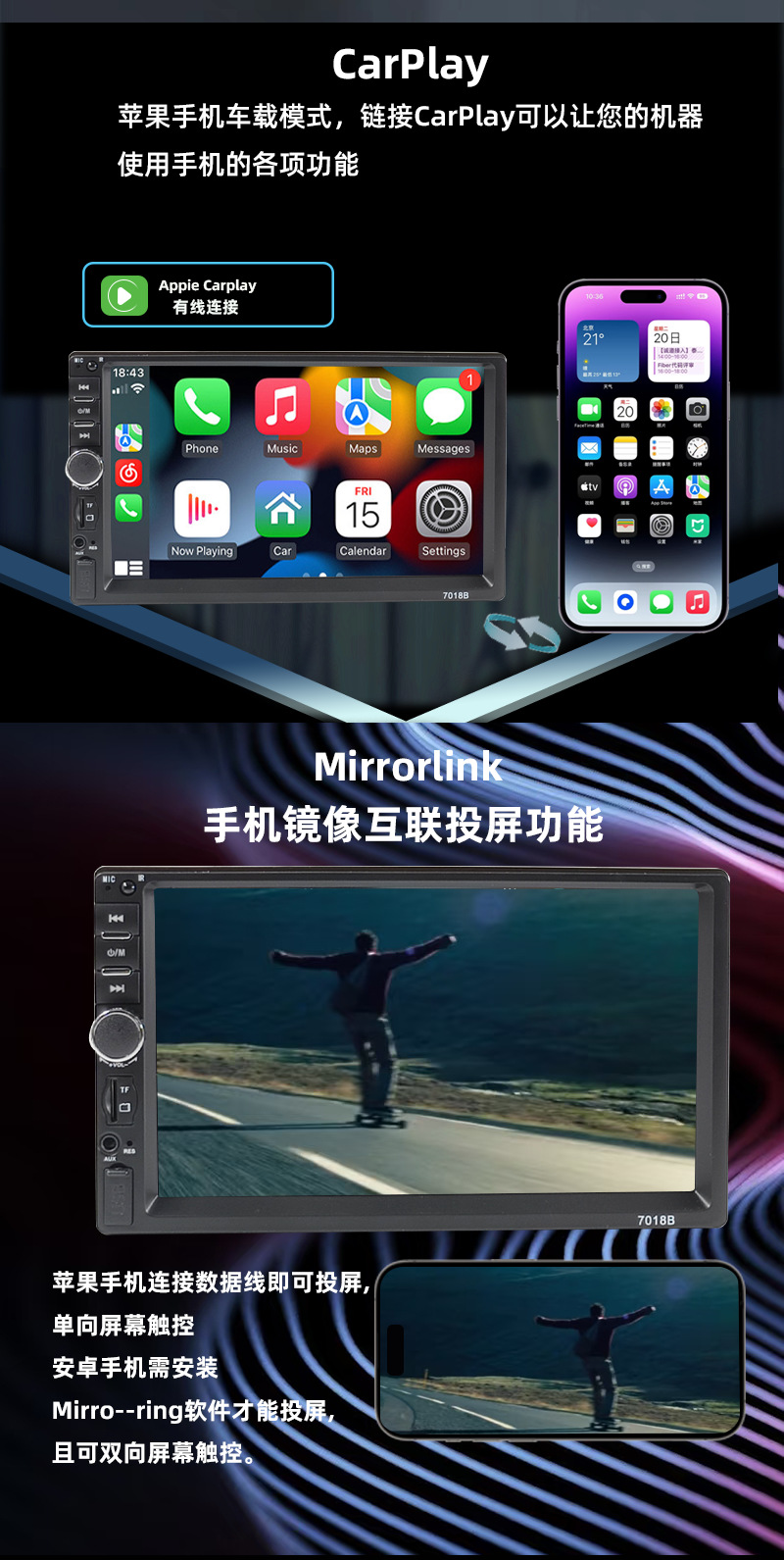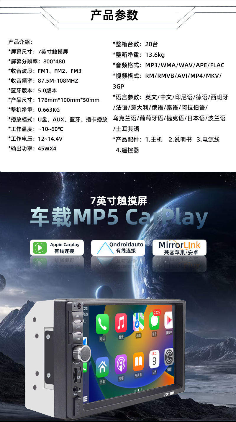 7 дюймовый универсальный Bluetooth HD MP5 плеер USB зарядка поддержка обратного отображения