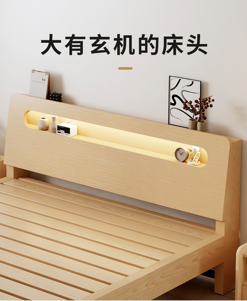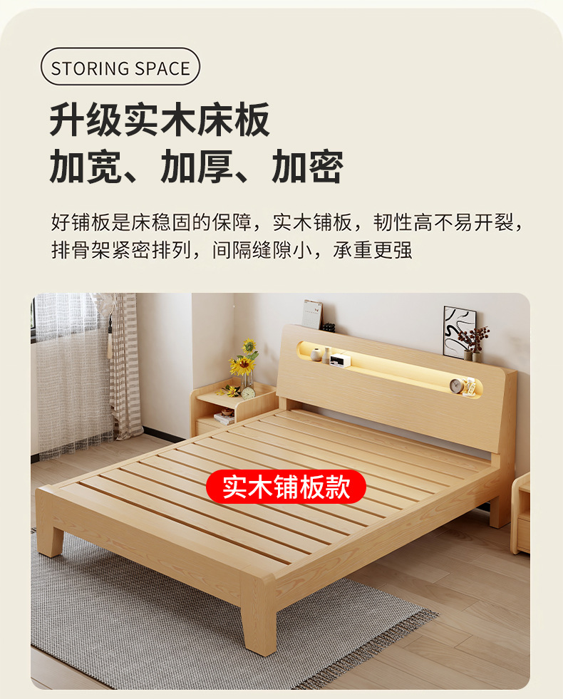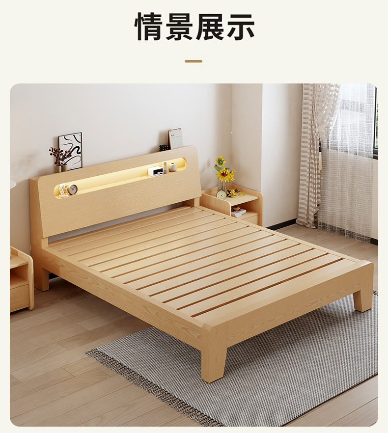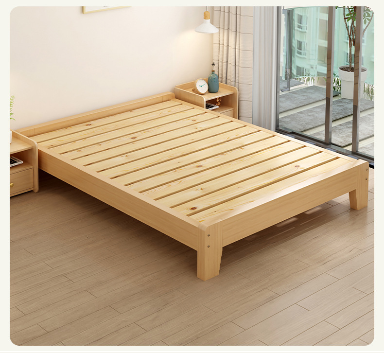 Кровать из массива дерева Современная Простая Двуспальная Кровать 1.8м Кровать из твердых пород дерева 1.5 Арендная комната Экономичная 1.2м Односпальная Каркас кровати