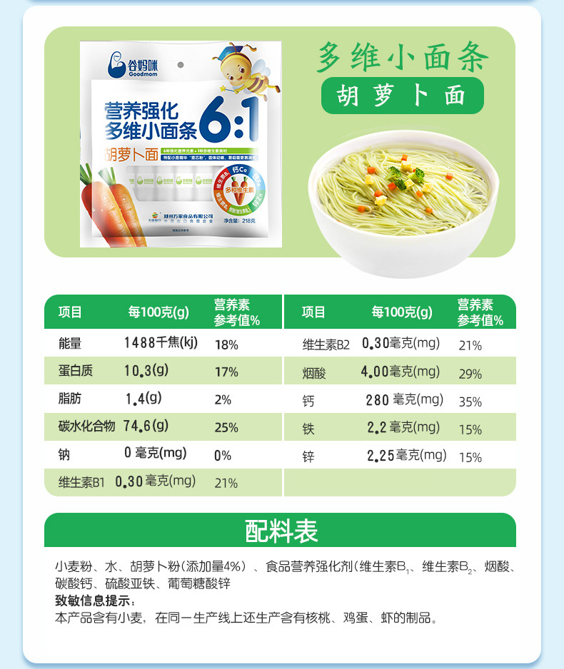 Детская лапша Gu Mommy 6:1 мультивитаминная, поддержка оптовых закупок, цветные овощи, кальций, железо, цинк