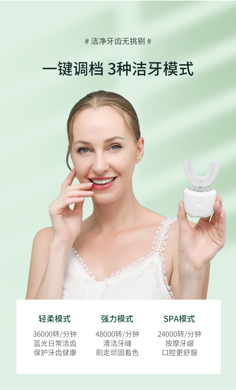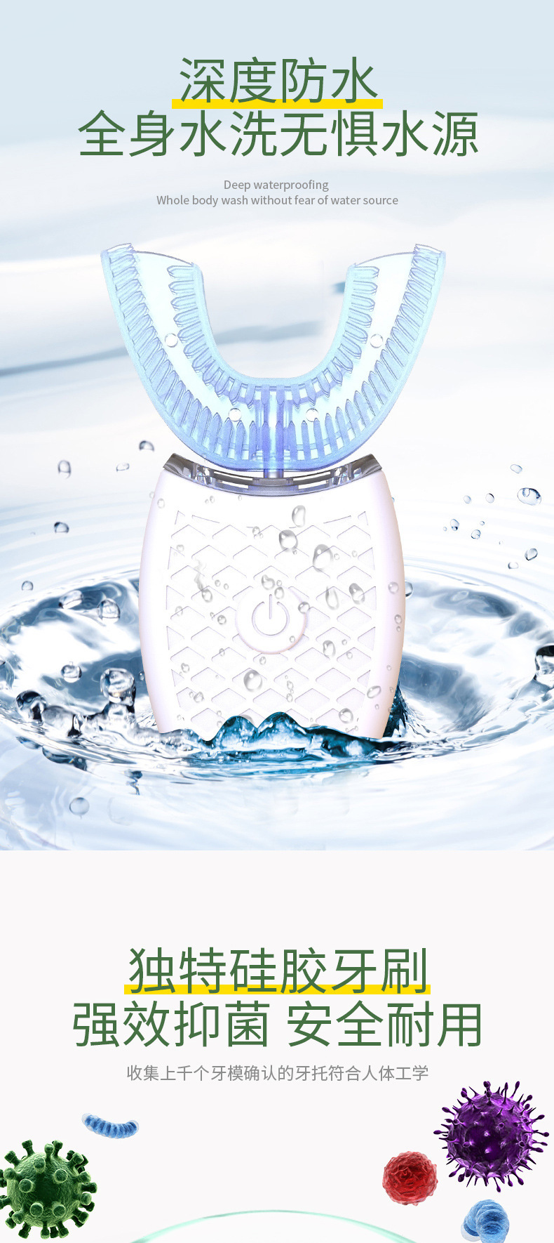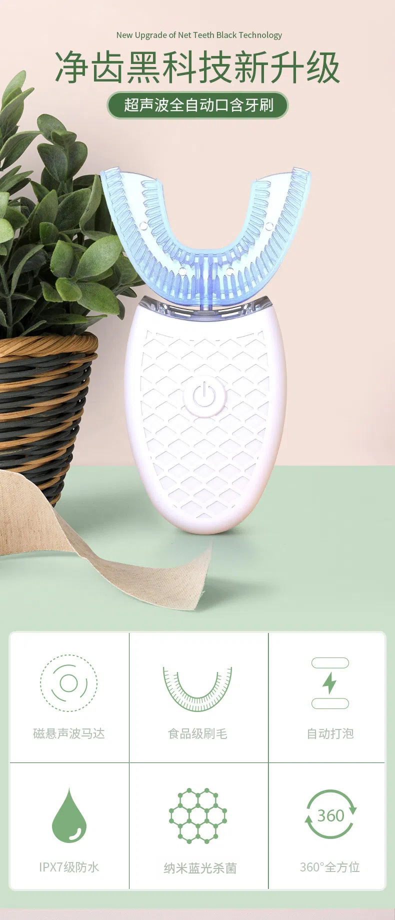 Электрическая зубная щетка U-образной формы, полностью автоматическое водонепроницаемое устройство для очистки полости рта, полностью моющееся, с функцией ультразвуковой очистки