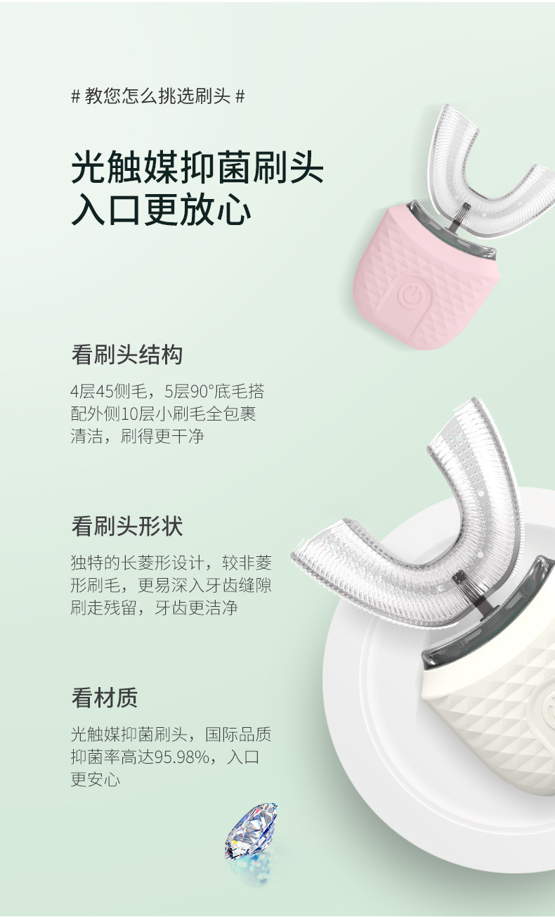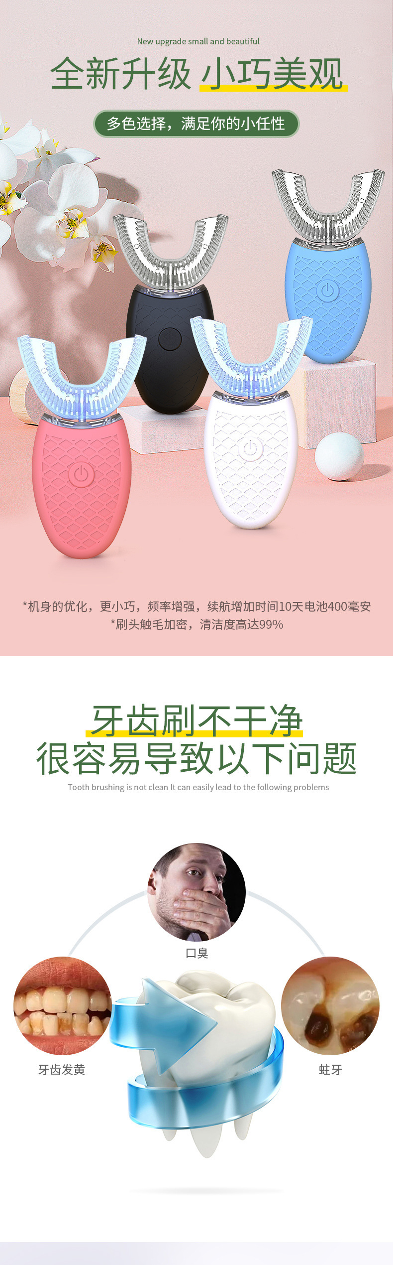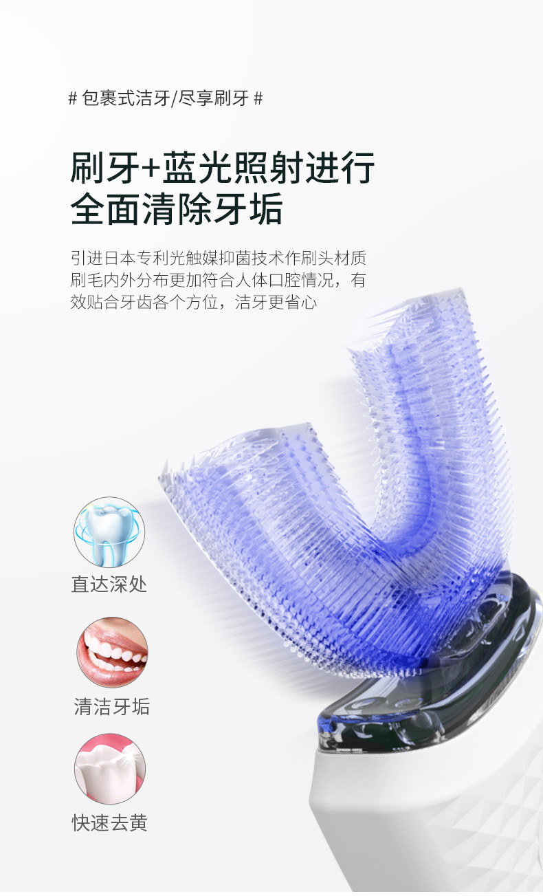 Электрическая зубная щетка U-образной формы, полностью автоматическое водонепроницаемое устройство для очистки полости рта, полностью моющееся, с функцией ультразвуковой очистки