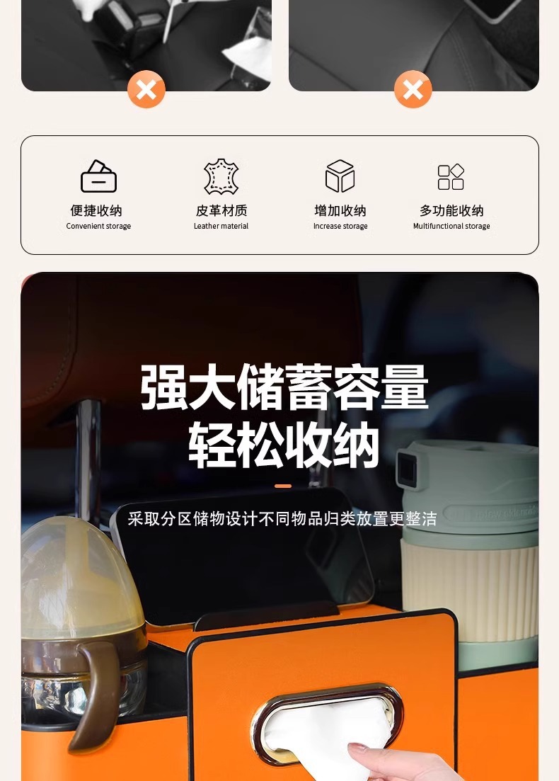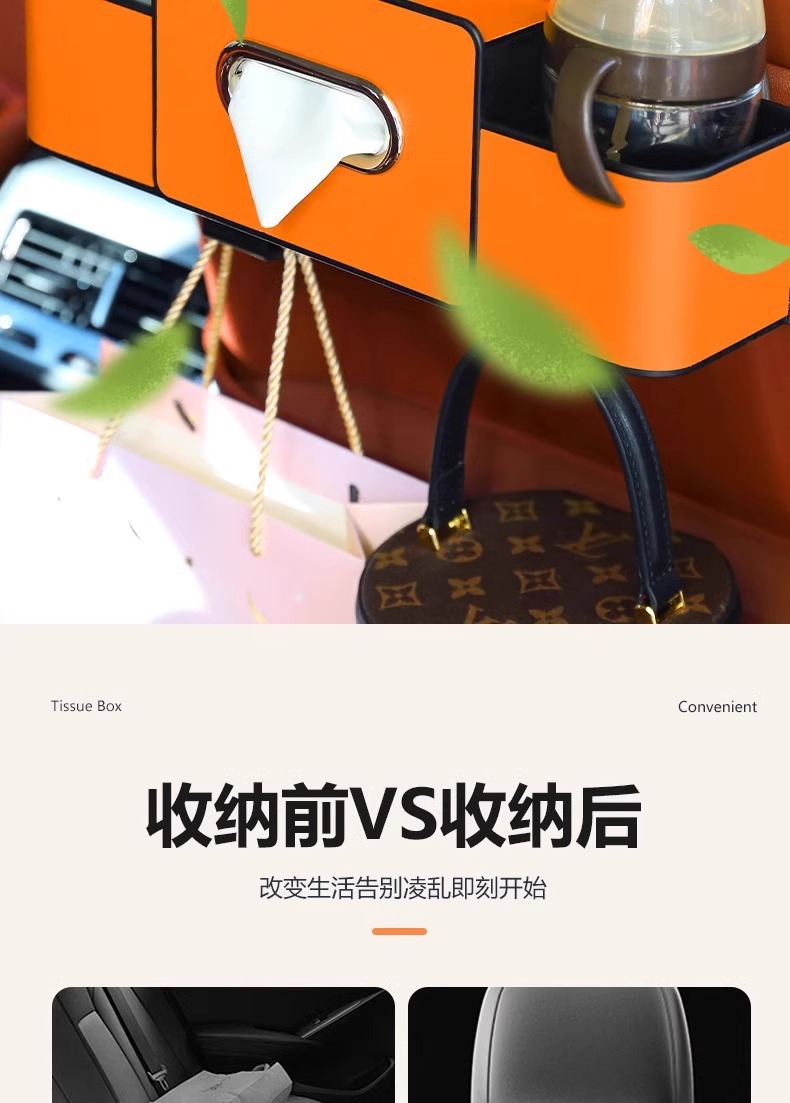 汽车座椅后背收纳盒多功能储物盒纸巾盒车载水杯架置物盒车内饰品