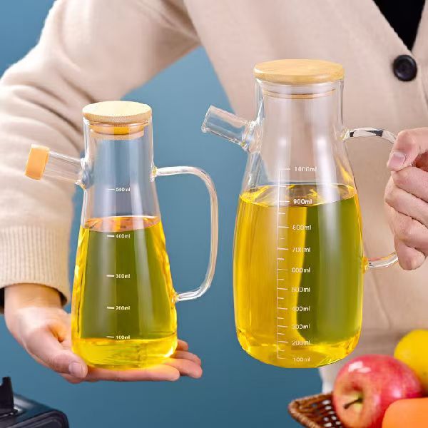 Стеклянный масляный кувшин с делениями для домашнего использования, антипригарный, высокоборо-силикатный с ручкой, стеклянная бутылка для соевого соуса, уксуса и масла