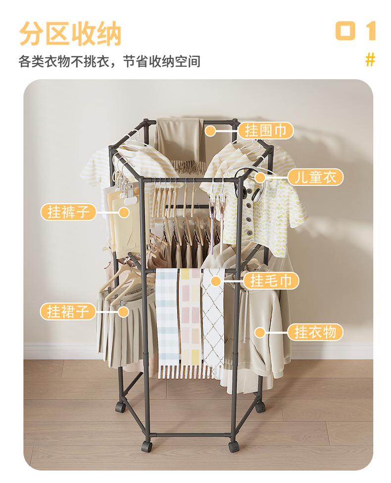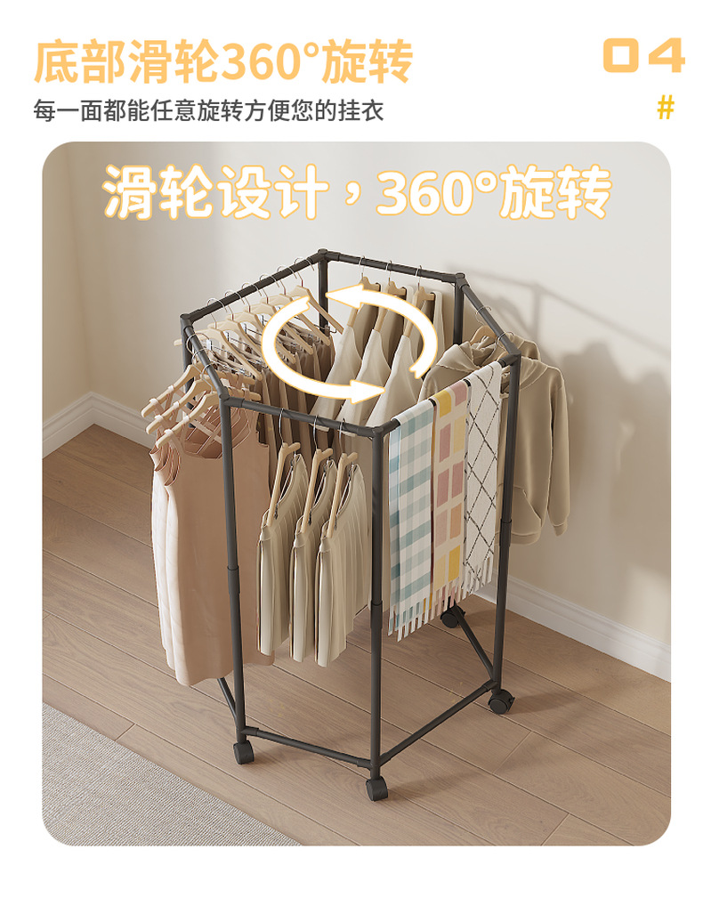 Простая напольная вешалка для одежды, вертикальная, бытовая, шестисторонняя, вращающаяся, для общежития, для сушки одежды