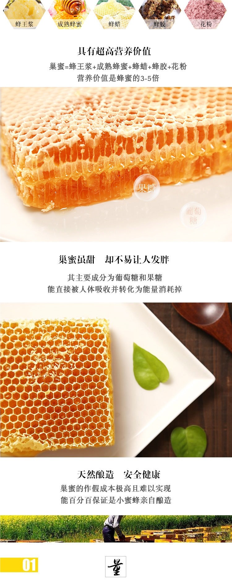 Мед из сот, натуральный фермерский дикий мед, старый пик, жевательная коробка