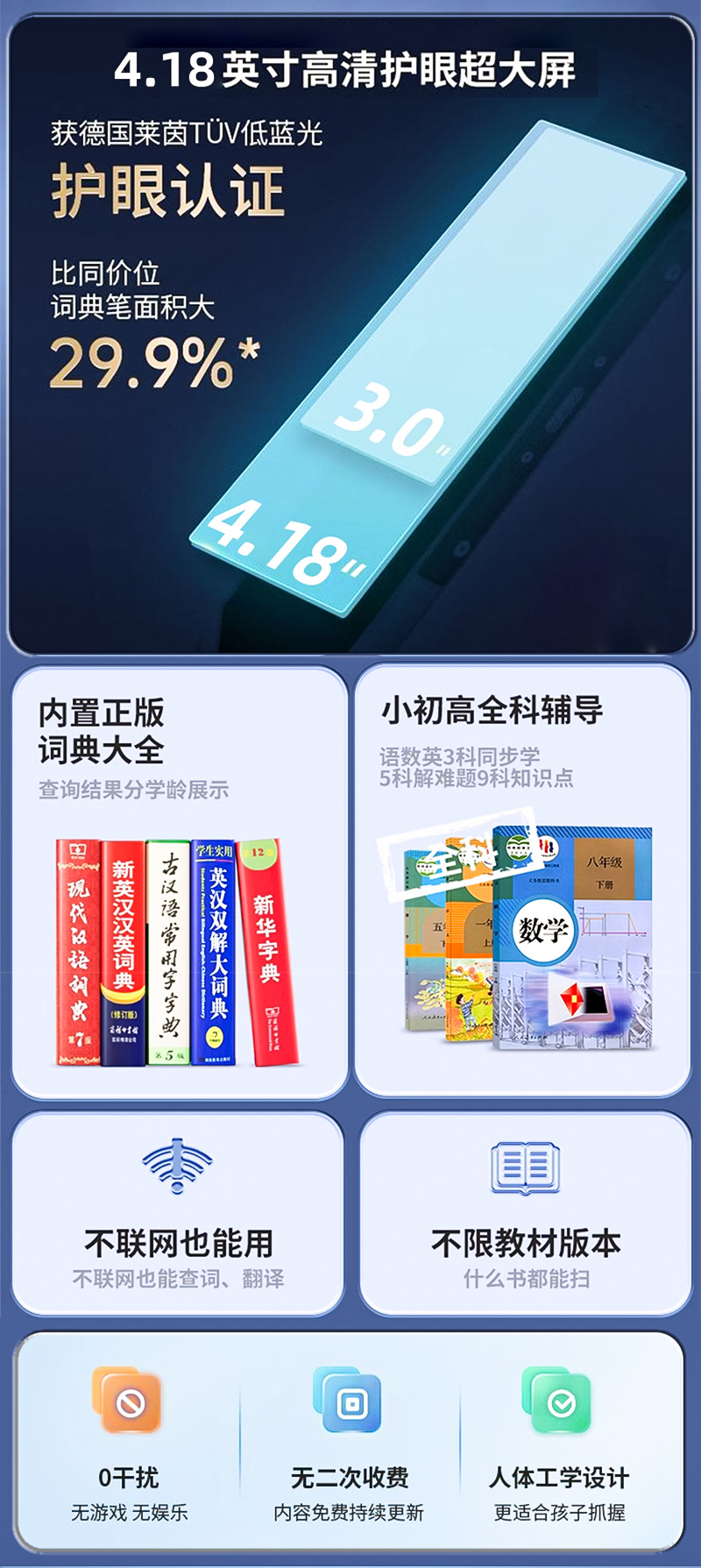 ![]() | General for primary school, high school and university/free silicone pen cover | 512g memory card + [ 4.18inch large screen] offline signs/photo scanning search questions/voice translation/high-quality classroom | ¥129.0 / ≈ 1 528 ₽ | 838 | 5890558192258 |