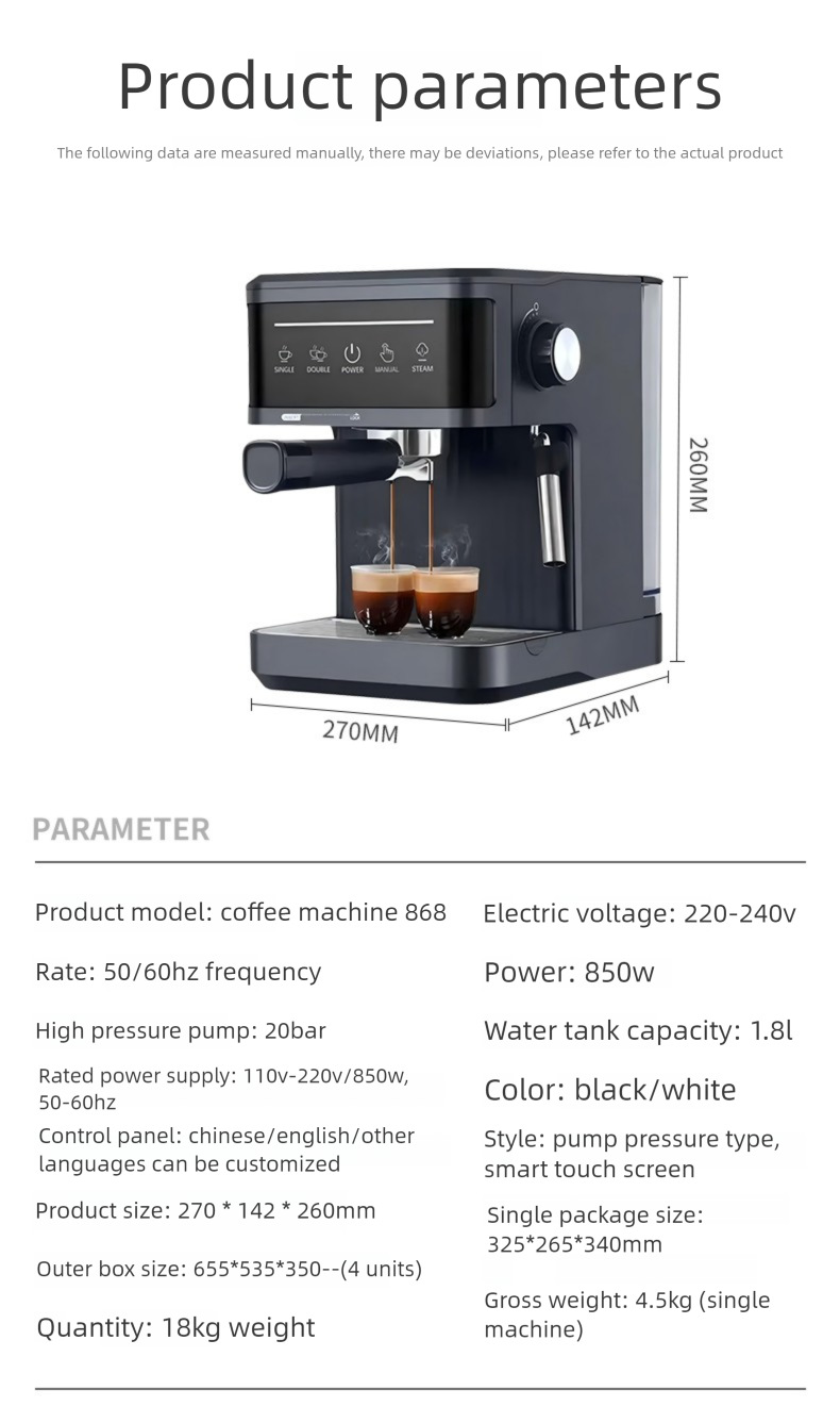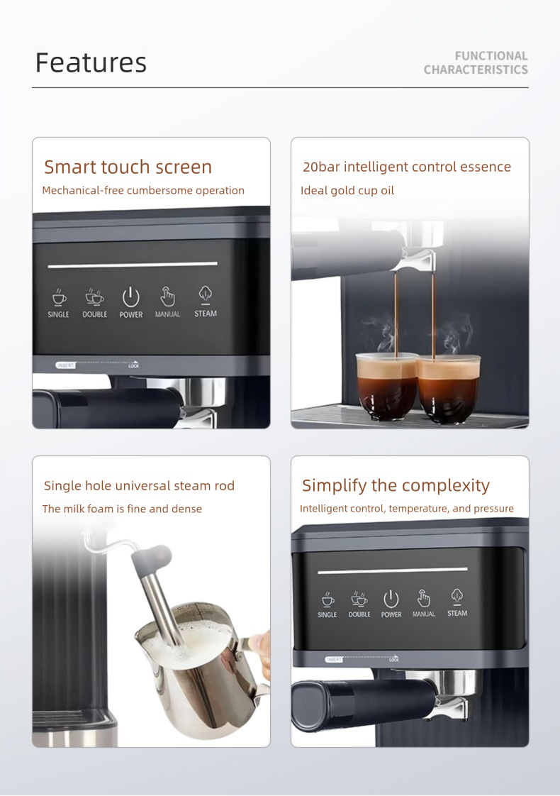 Кросс-бордерная кофемашина эспрессо для дома, высоконапорная экстракция, малый офис, полупрофессиональная с паром для молочной пены