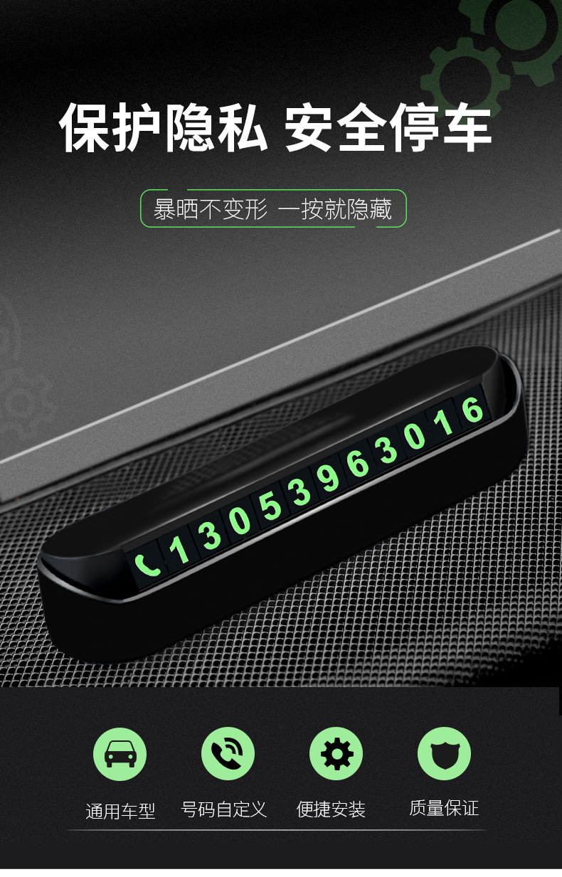 Временный знак парковки, движущийся автомобиль, номерной знак, высококачественный люминесцентный скрытый телефонный знак, автомобильные принадлежности