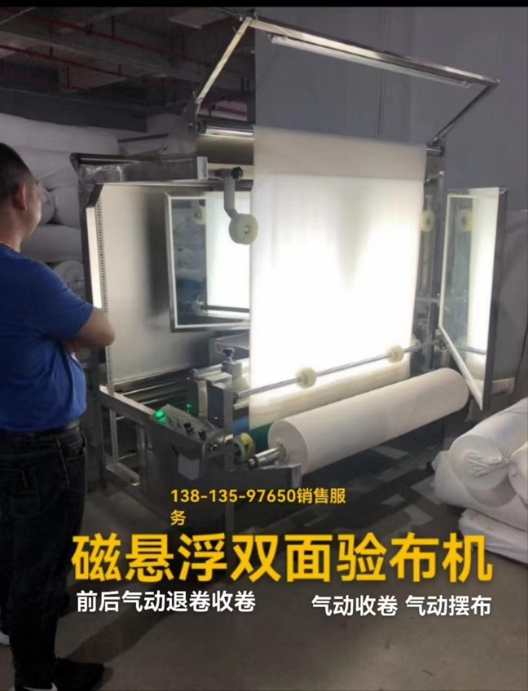 Машина для инспекции трикотажной ткани с двусторонним магнитным левитационным устройством, двусторонняя машина для инспекции ткани, передняя и задняя положительная и отрицательная связь