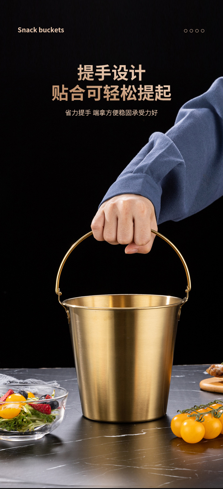 Маленькое ведро из нержавеющей стали 304 для шампанского, пива, льда, золотое ведро, креативное ведро для картофеля фри, жареной курицы, морепродуктов