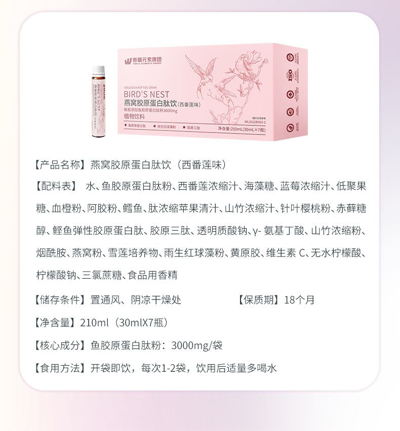 Основные сырьевые материалы Water, fish collagen belly powder, western dew juice, seaweed eyes, blueberry juice concentrate