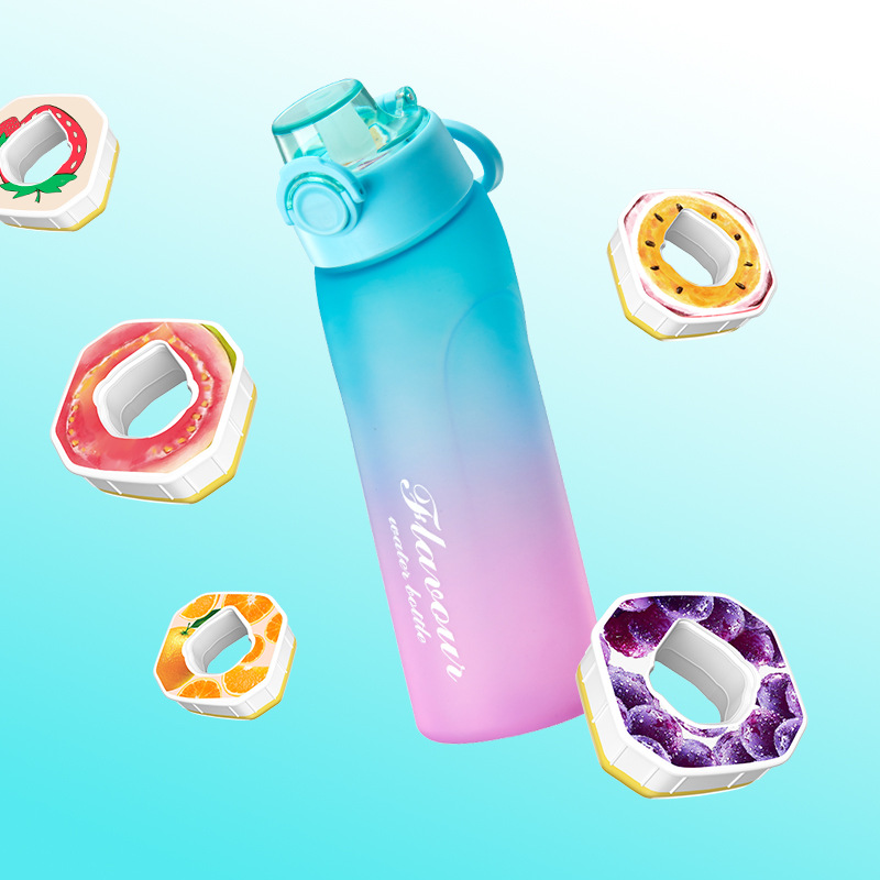 Кросс-бордерная электронная коммерция, игривый фруктовый стакан для воды, двухцветный градиент, пластиковый, 0 сахара, 0 калорий, с соломкой