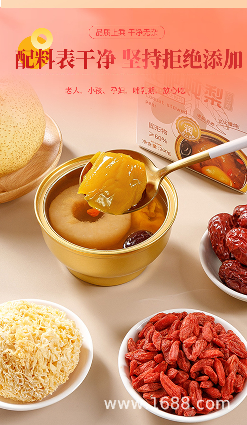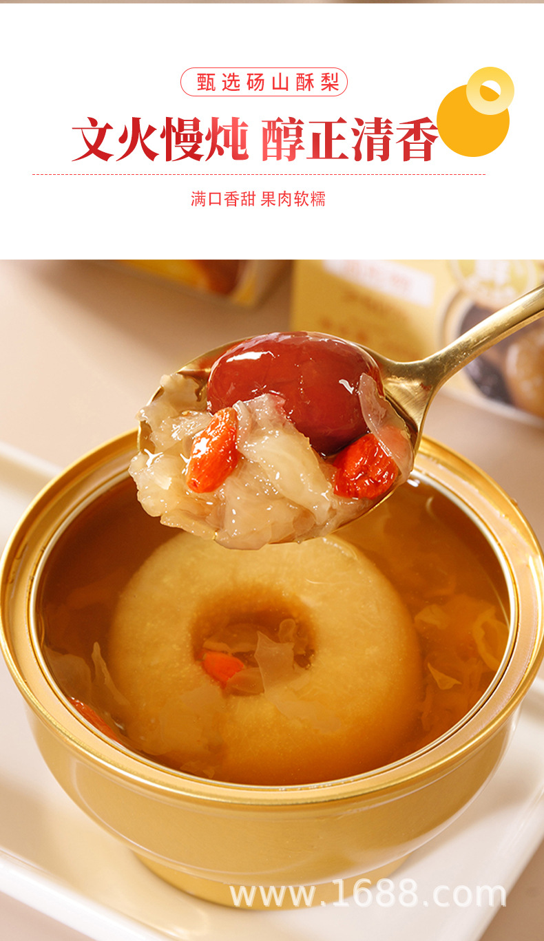 Сырьё и ингредиенты Pear, water, loquat fruit, white fungus, red dates, yellow rock sugar, wolfberry