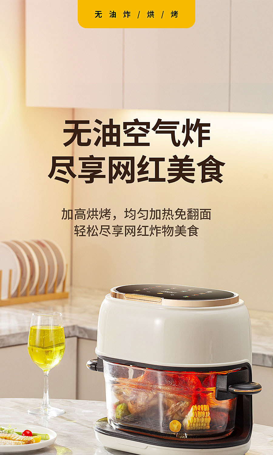 Новая 4L стеклянная фритюрница для дома большой емкости кросс-бодер фритюрница с сенсорным экраном многофункциональная безмасляная для картофеля