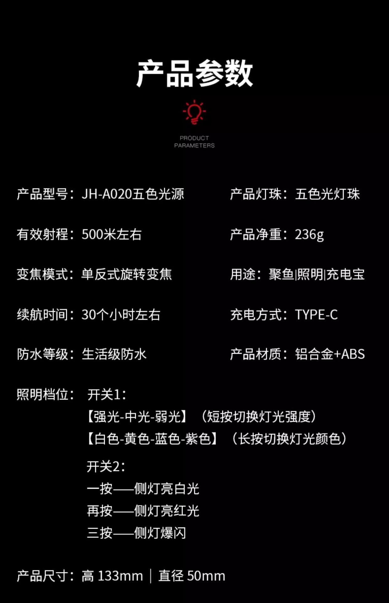 ![]() | Jh-020 space gray main light 3 lights + side light + fishing chair bracket | ¥40.0 / ≈ 482 ₽ | 6000 | 5813417644963 | |