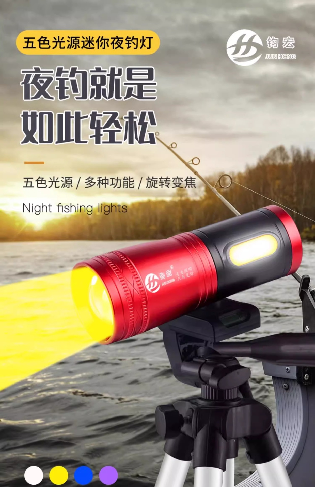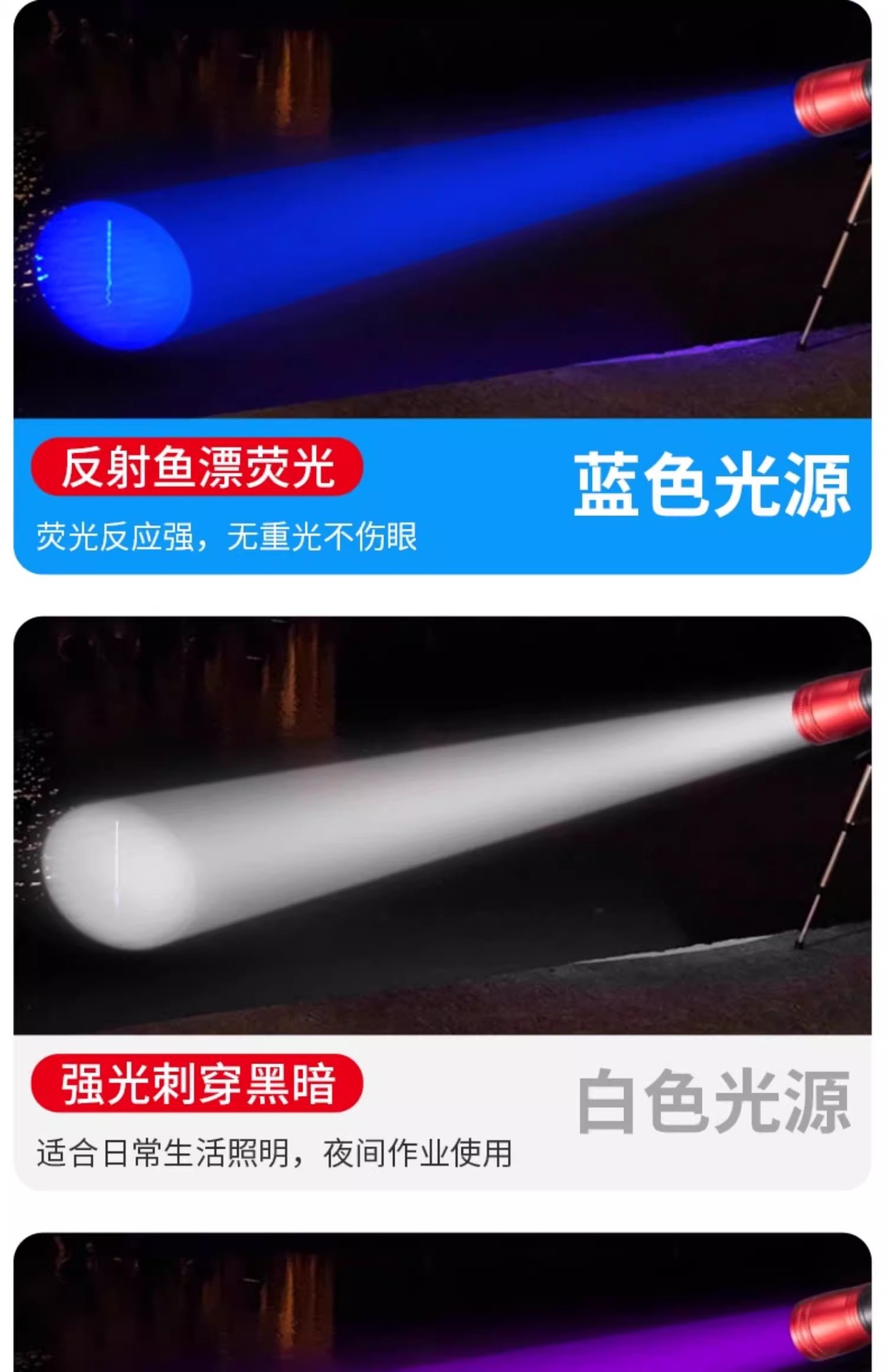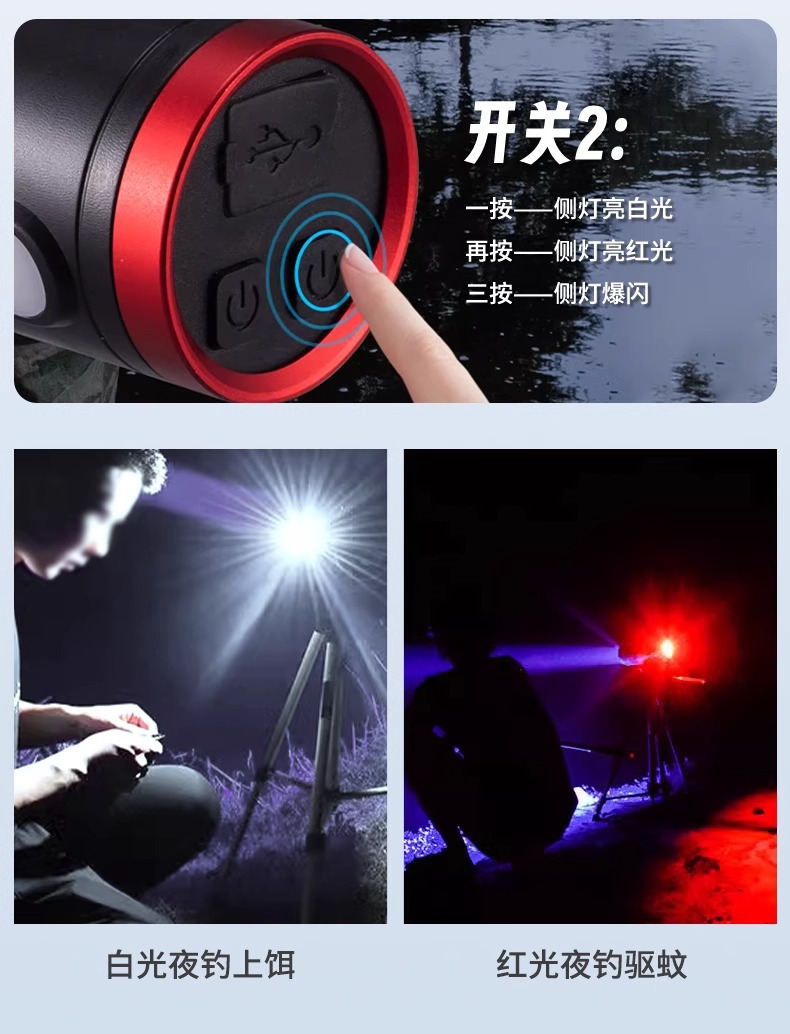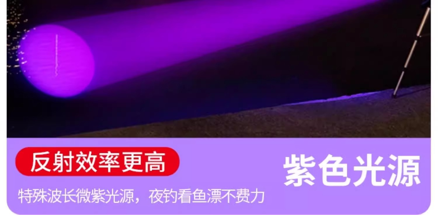 Фонарь для рыбалки, ночной фонарь, перезаряжаемый фонарь для рыбалки, зумируемый фиолетовый свет, фонарь с четырьмя источниками света, водонепроницаемый, многофункциональный, яркий свет