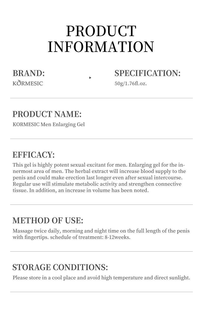 ![]() | Kormesic men's massage gel 50g [only for foreign trade cross-border sales, domestic sales are prohibited, purchase means disclaimer and responsibility] | ¥1.2 / ≈ 14 ₽ | 4618 | 5816455900664 |