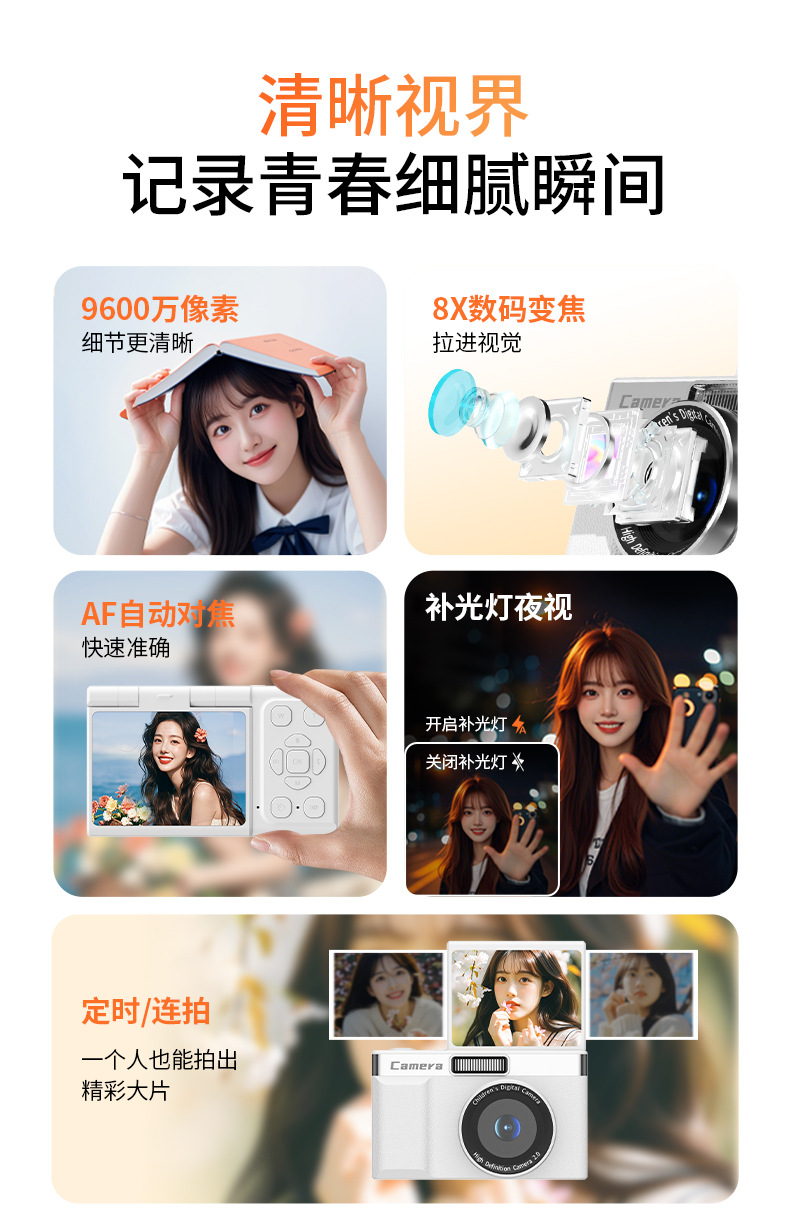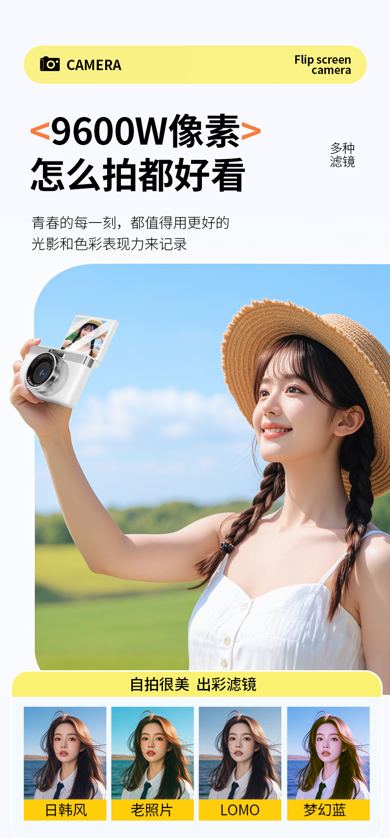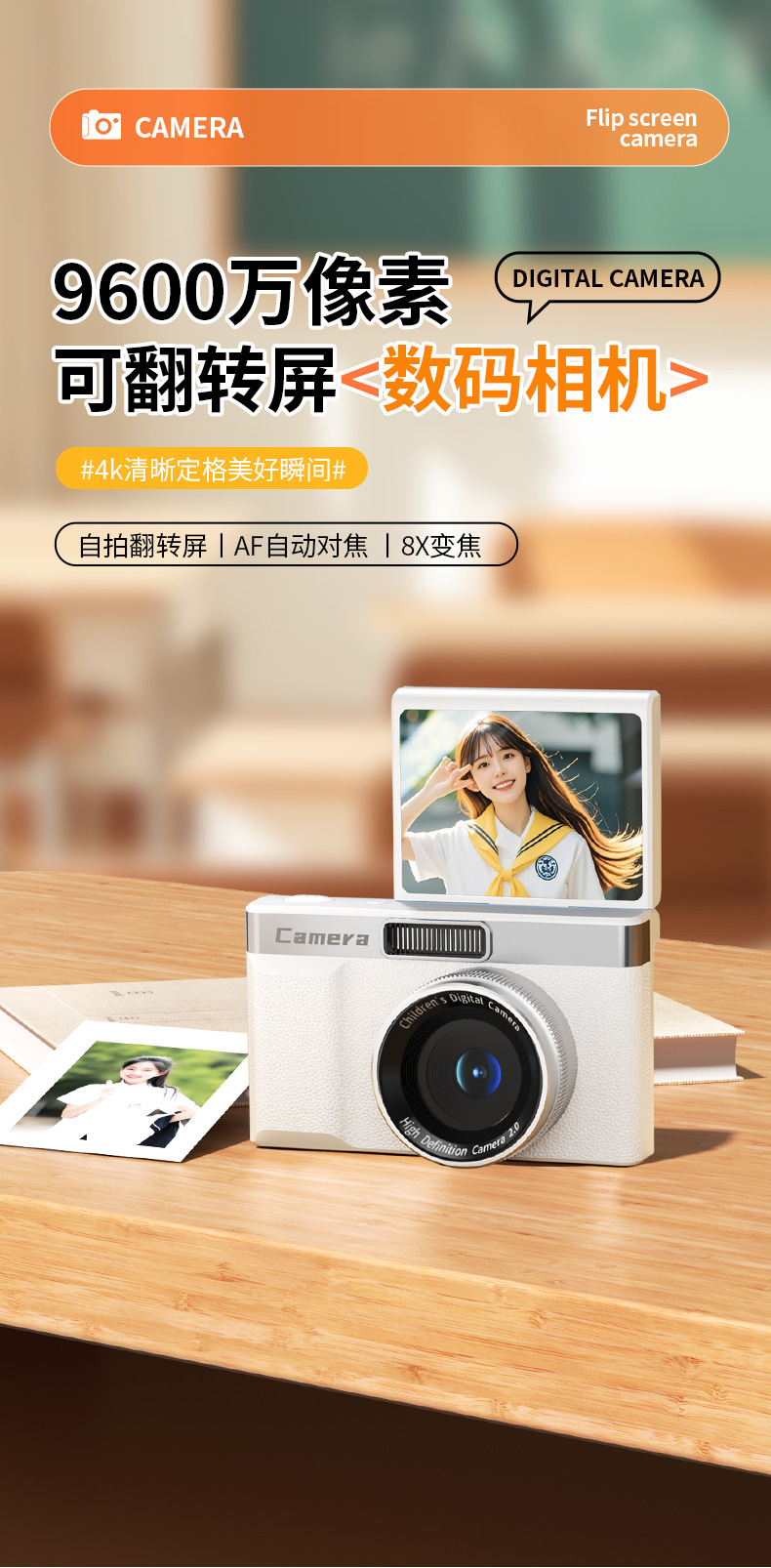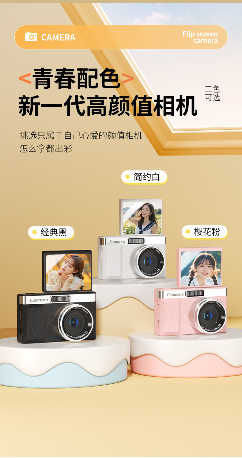 Новая камера с переворачивающимся экраном для студентов Pixel, высокое разрешение, полароидная цифровая камера CCD, ретро-камера для студенческих карточек