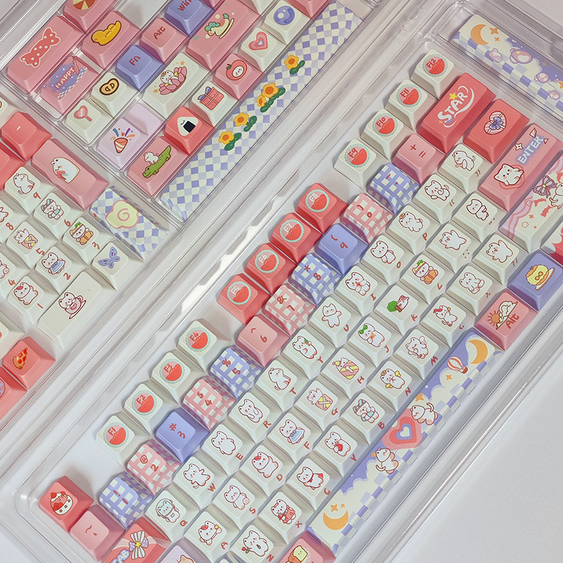 Оригинальные высококачественные клавиши розового кролика для вечеринки, пятигранная сублимация, для механической клавиатуры